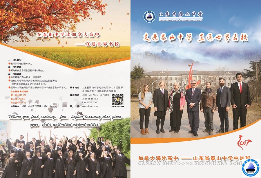 山东省泰山中学中加班2017级新生开始报名啦