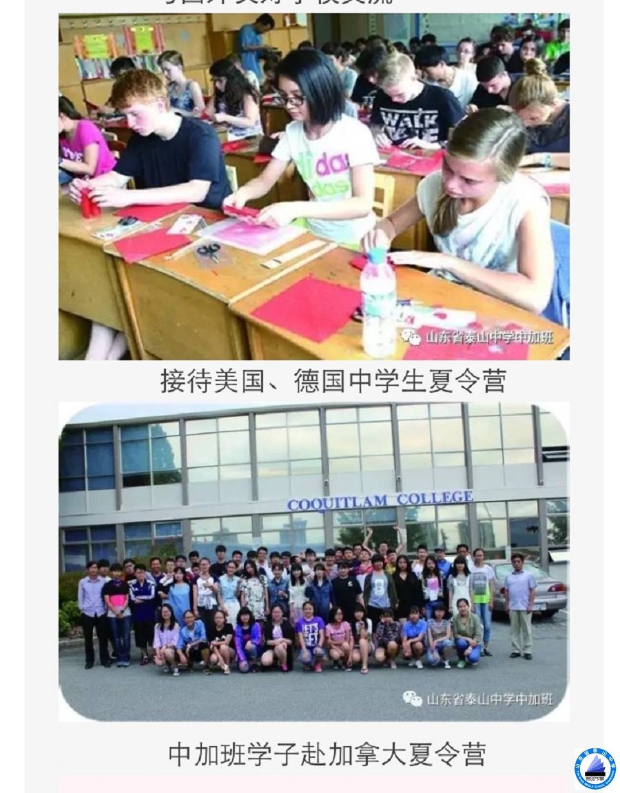 山东省泰山中学中加班(Canada Shandong Secondary School)是泰安市最早的高中段中外合作办学项目,先进的办学理念,丰富的办学经验,雄厚的师资力量,成为山东省中外合作办学第一品牌。走进泰山中学中加班,不出国门便可享受原汁原味的北美高端高中教育。中加班培养学生的国际视野及领导力,激发学生的创新思维,为学生将来走出国门学习和生活打下坚实基础。