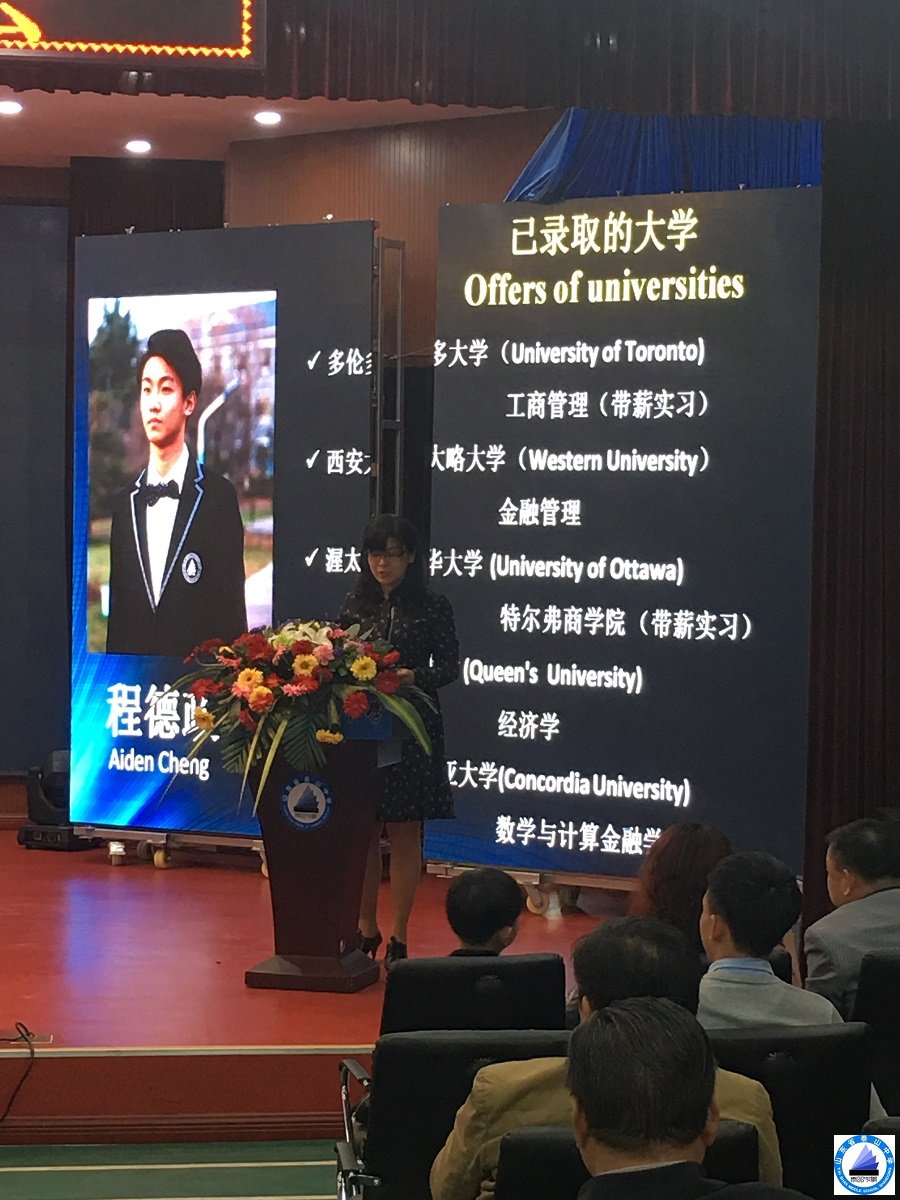 接着,优秀毕业生耿懿潇家长刘晶女士、在读高三学生程德政家长孙蕾女士和陈凡北家长陈书来先生依次发言。他们表示,中加班良好的校园环境、完善的教学设施、严谨规范的教学管理水平,超前的办学思路、现代化的教学理念,还有中加双方的老师们的谆谆教诲和言传身教,给了孩子们一段幸福快乐的高中生活。而且经过三年来学校领导的重视、中加双方老师的努力,孩子们都被世界一流大学录取,社会实践能力及综合素质也大为提高,真诚感谢老师们对学生倾注的无私奉献。
