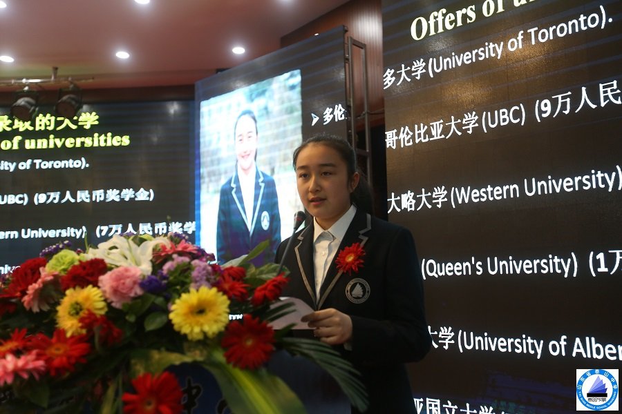 随后,高三年级邱月同学发言,她从自身的角度具体介绍了平时的学习生活、社会实践等内容,并表示中加班三年的学习让自己有了全方面的提高,不仅是英语的熟练掌握和知识的增加,而且是在领导能力、组织能力、社会交往等综合素质上有了很大的提升。