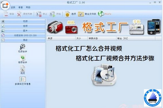 格式工厂是一款国内非常受欢迎的视频转换工具,支持MP4、AVI、RMVB、3GP、KTV、SWF等各类视频文件格式相互转换。号称是一款万能的视频/音频转换工具,并且还支持视频合并功能,深受智能手机、MP4\MP5用户欢迎。对于格式化工厂视频转换教程,之前我们有所介绍,接下来本文与大家介绍下格式工厂怎么合并视频,有兴趣的童鞋,不妨学习下吧。