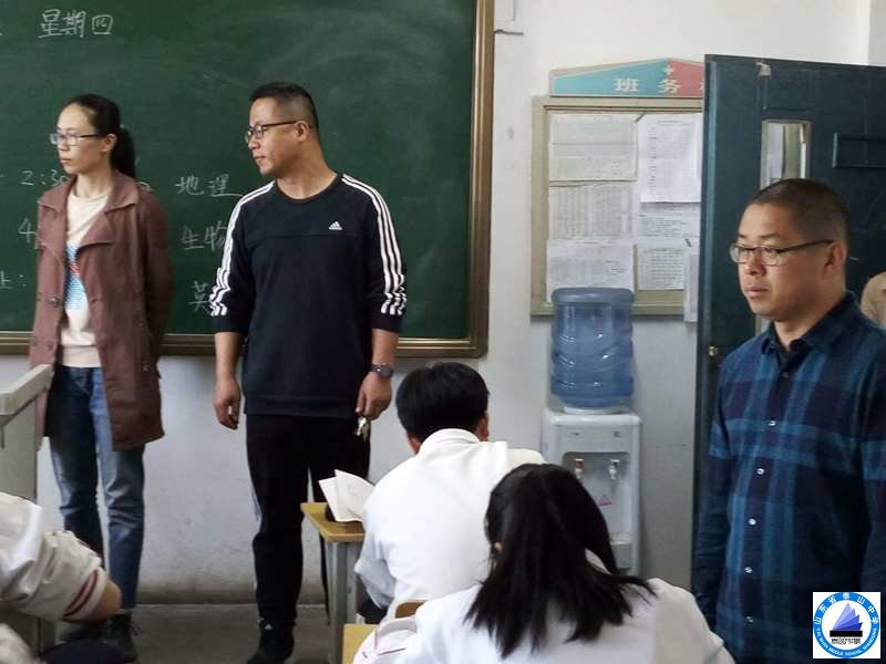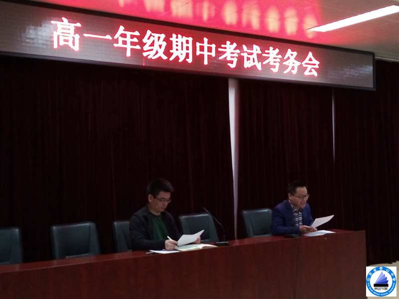 2017年4月25日,厚德楼电子屏滚动播出考试科目、违规违纪学生处理规定、诚信考试标语等注意事项;4月25日下午召开全体教师期中考试专题会议,年级主任刘启东老师主持,分管校长胡国保同志参加;部署考试事宜,班主任严格整理考场,年级领导组织验收;每场两名老师一前一后监考,小班邀请部分家长参与监考,让家长亲自体验考场气氛,也给孩子一种心灵的默契和无言的支持。考试过程中,胡校长率领教务处领导加大对考场的巡视,年级主任刘启东老师带队,配备金属探测仪,组织教师严格巡逻,每场必查,每人必检,严格执行高考监考标准,发现作弊行为立即处理,立即广播通报,4月26日处理7起作弊事件,4月27日零作弊事件。