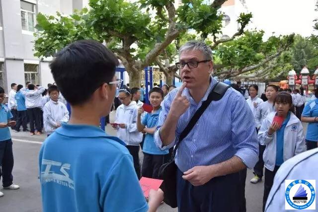 5月5日下午,泰山外国语学校举行金牌“英语角”社团活动启动仪式,泰山中学中加班的加方校长Mr. Dan热心助阵,2016届的优秀毕业生齐鸿儒、孟祥麟、张小童等七名同学也利用回国休假的机会,志愿参与到活动当中。