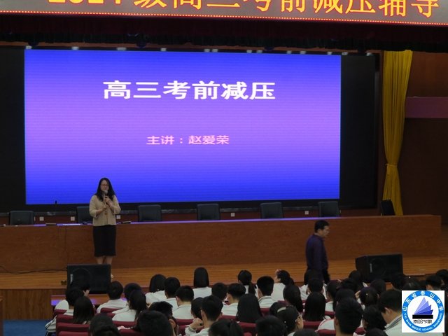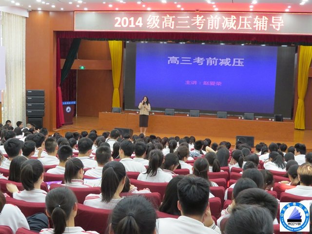 5月17日、18日两天,山东省泰山中学的高三全体学生分两场,参加了由学校学生发展咨询中心主任、国家二级心理咨询师赵爱荣老师主讲的高考考前催眠减压活动。