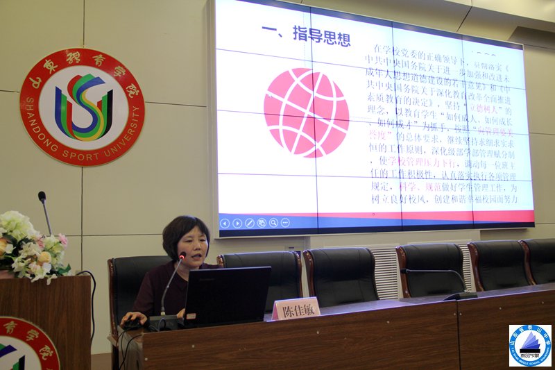 学工处副主任刘明在新学期开学前准备工作部署中,对学生管理、新生军训、食宿一体化、违纪学生处理等具体工作进行了解读说明。