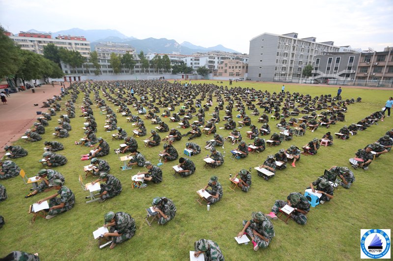 近日,泰山中学在学校操场上举行了新生校规校纪考试,1300余名新生席地而坐,沉着应答。