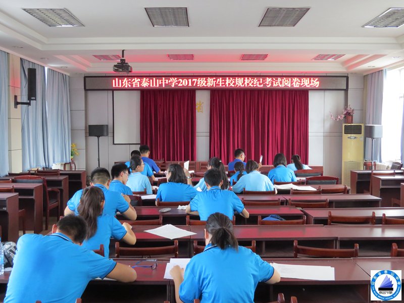 为践行社会主义核心价值观,全面实施依法治校,增强学生纪律意识,教育学生遵规守纪,泰山中学在每年军训期间都要组织新生进行校规校纪考试,已坚持多年。