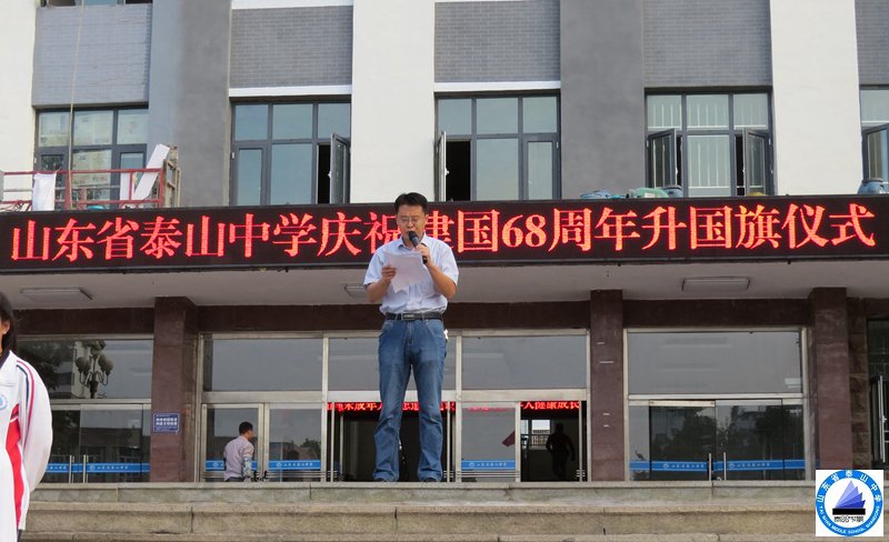 山东省泰山中学举行庆祝建国68周年升国旗仪式