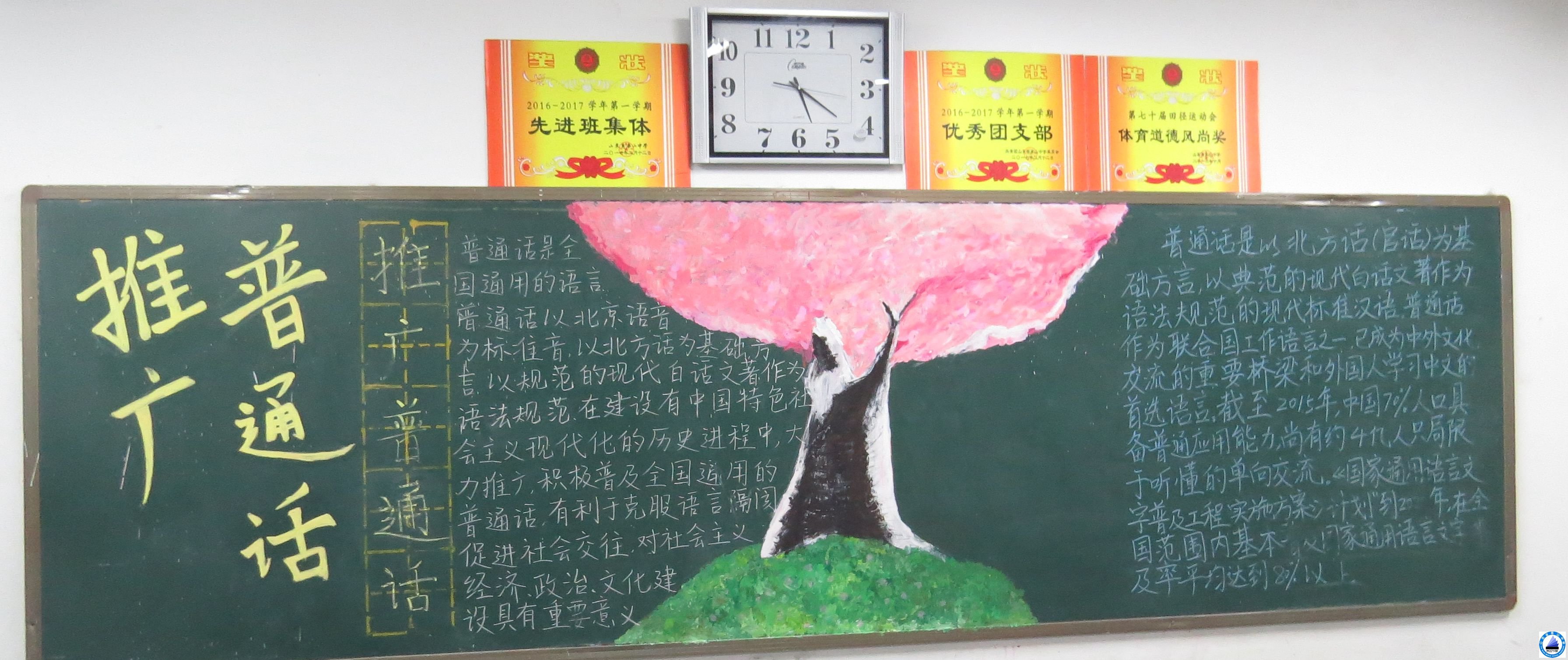 在学校开展的“第二十届推普周”优秀板报评比活动中,各级部,学部团总支按照团委要求,认真组织,各团支部认真落实,设计的板报较好的宣传了普通话的普遍性,图文并茂,内容充实,很好的体现了活动的宣传教育作用。现将部分优秀板报展评如下: