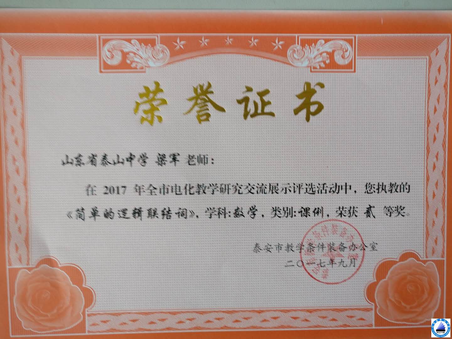 梁军老师执教的《简单的逻辑连接词》荣获数学课例二等奖;