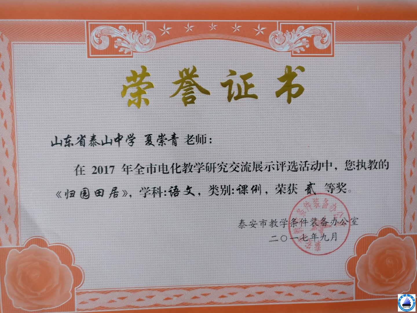 夏崇青老师执教的《归田园居》荣获语文课例二等奖;