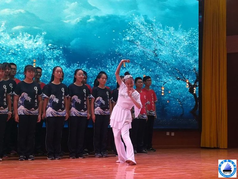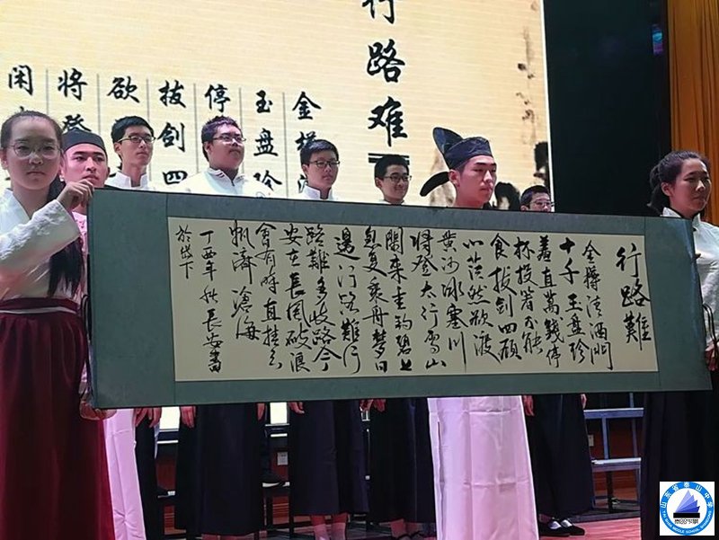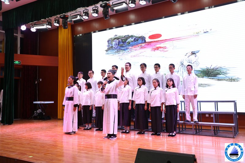 比赛现场,各班精心准备,或慷慨抒怀,歌唱祖国,献礼党的十九大,或轻歌曼舞,深情款款,浅吟低唱,尽情演绎着自己对经典的理解,或西装革履,或端庄汉服,丝袖飘飘,长袍猎猎,浓浓的中国风扑面而来。
