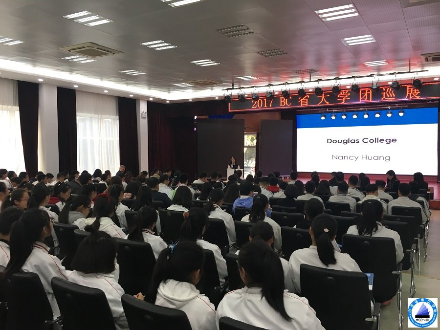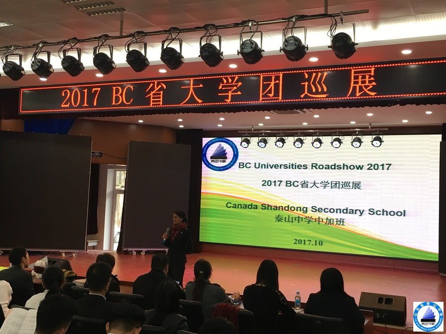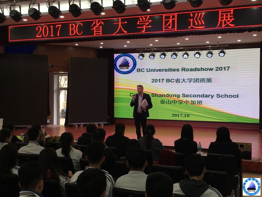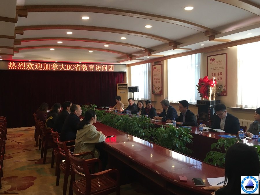 10月24日下午,加拿大BC省教育访问团一行14人访问我校。BC省国际教育协会海外教育主任Collin先生,BC省国际教育协会国家战略项目负责人Tom先生,BC省就业、贸易及科技厅国际教育负责人Pavan女士,BC政府国际贸易投资办公室教育推广经理Lydia女士,加拿大驻青岛商务处商务Peter先生带领加拿大BC省道格拉斯学院、菲莎国际学院、昆特兰理工大学、北岛学院、西三一大学、北英属哥伦比亚大学、菲莎河谷大学、温哥华电影学院以及温哥华岛大学9所大学的招生老师参观我校,并为我校中加班的学生献上了精彩纷呈的学校特色及专业介绍的大学巡展。