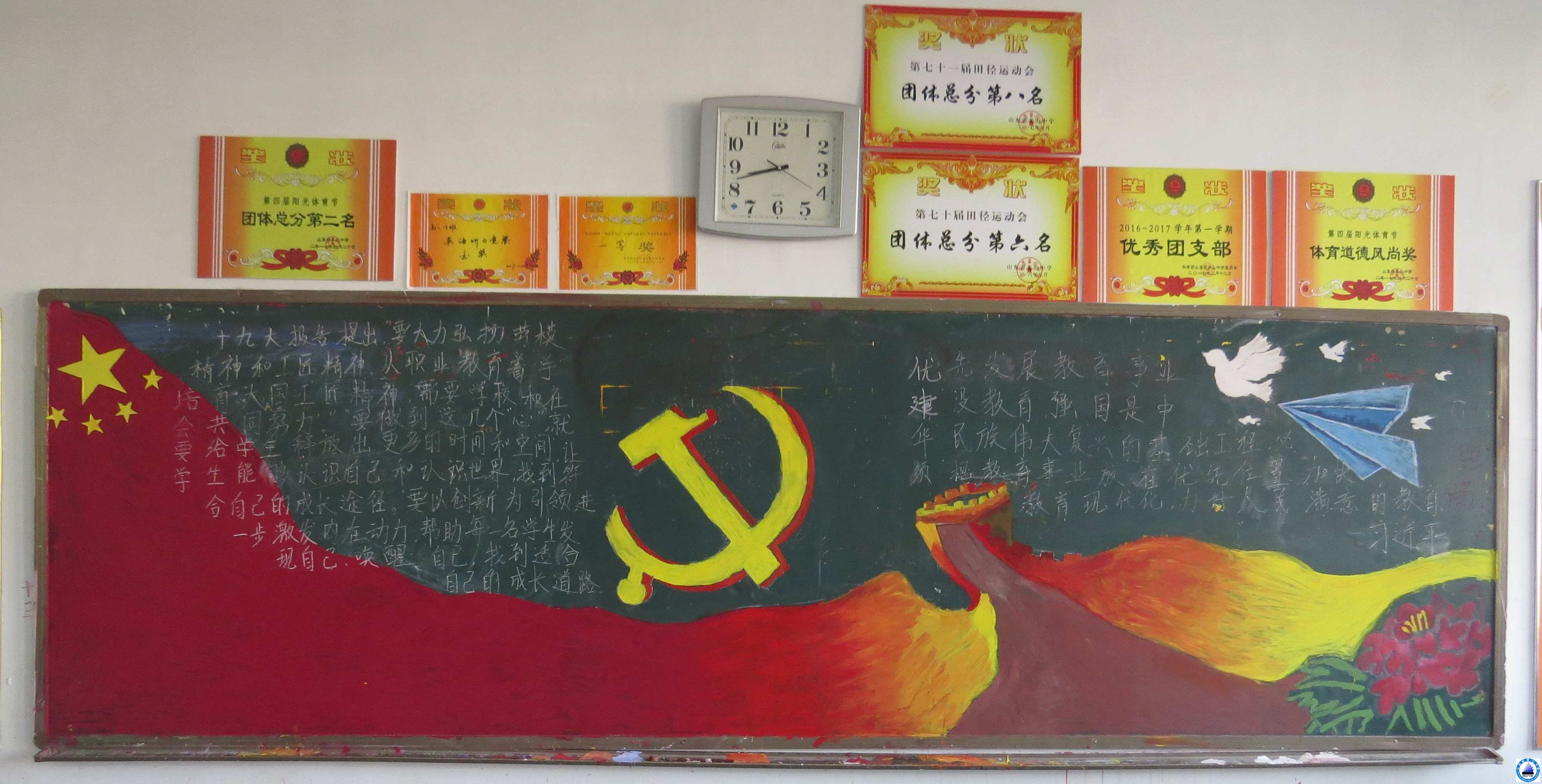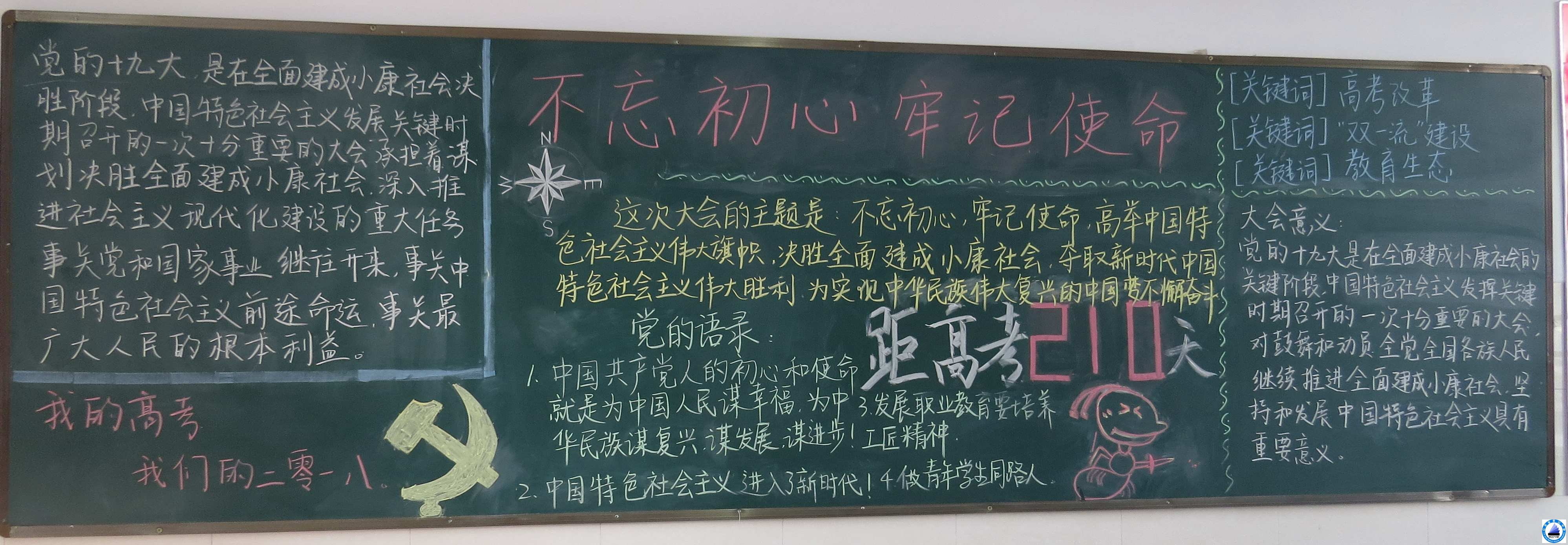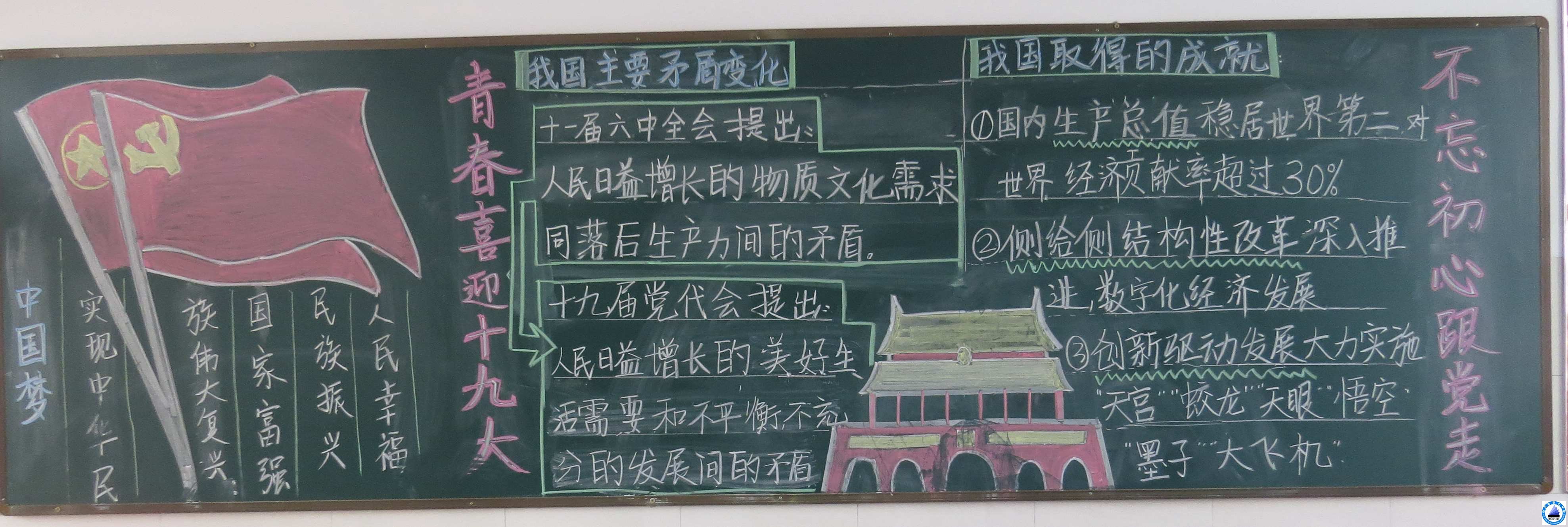 在学校开展的“不忘初心,牢记使命”——十九大主题优秀板报评比活动中,各级部,学部团总支按照团委要求,认真组织,各团支部认真落实,设计的板报较好的宣传了十九大精神,图文并茂,内容充实,很好的体现了活动的宣传教育作用。现将部分优秀板报展评如下: