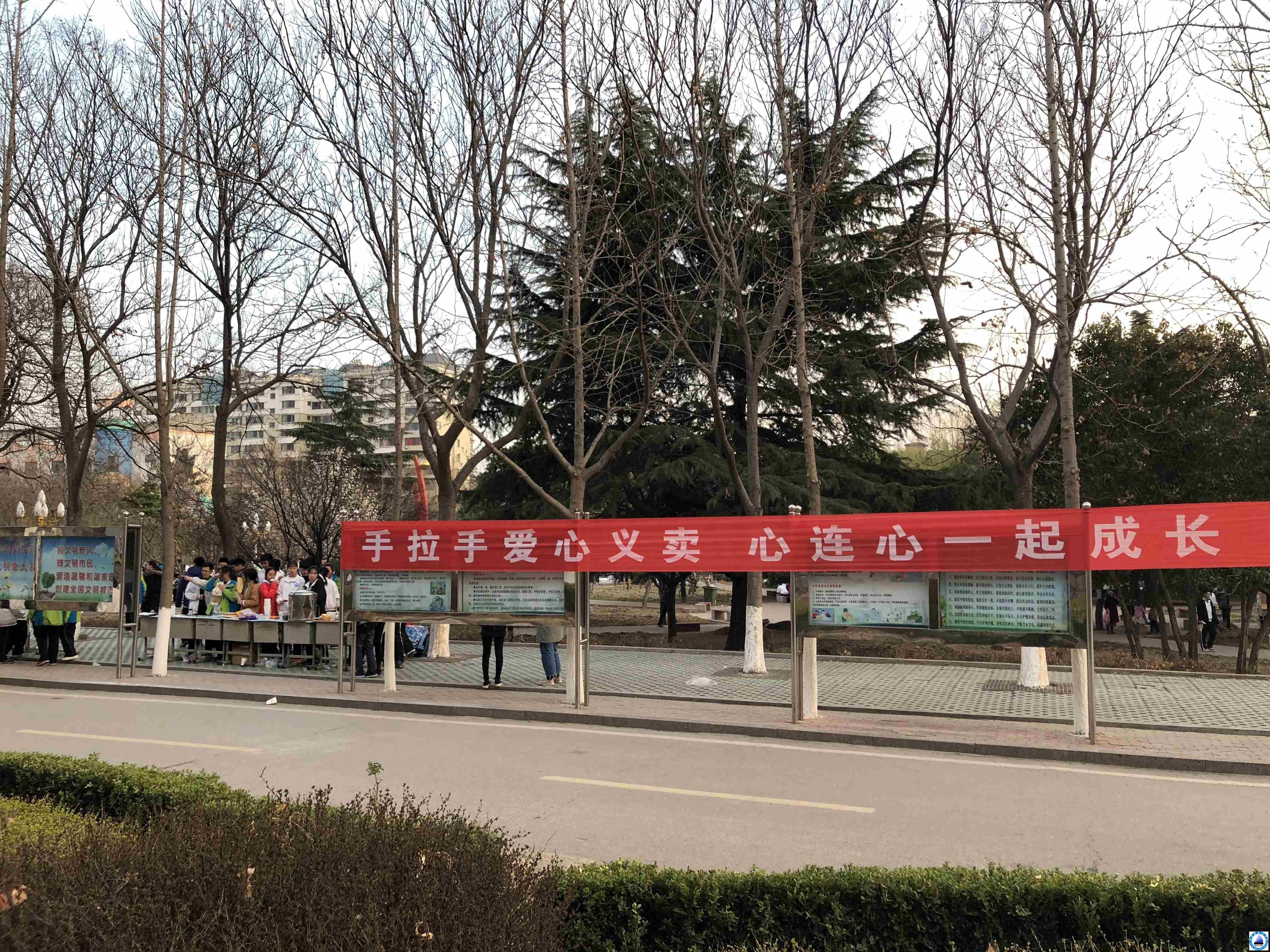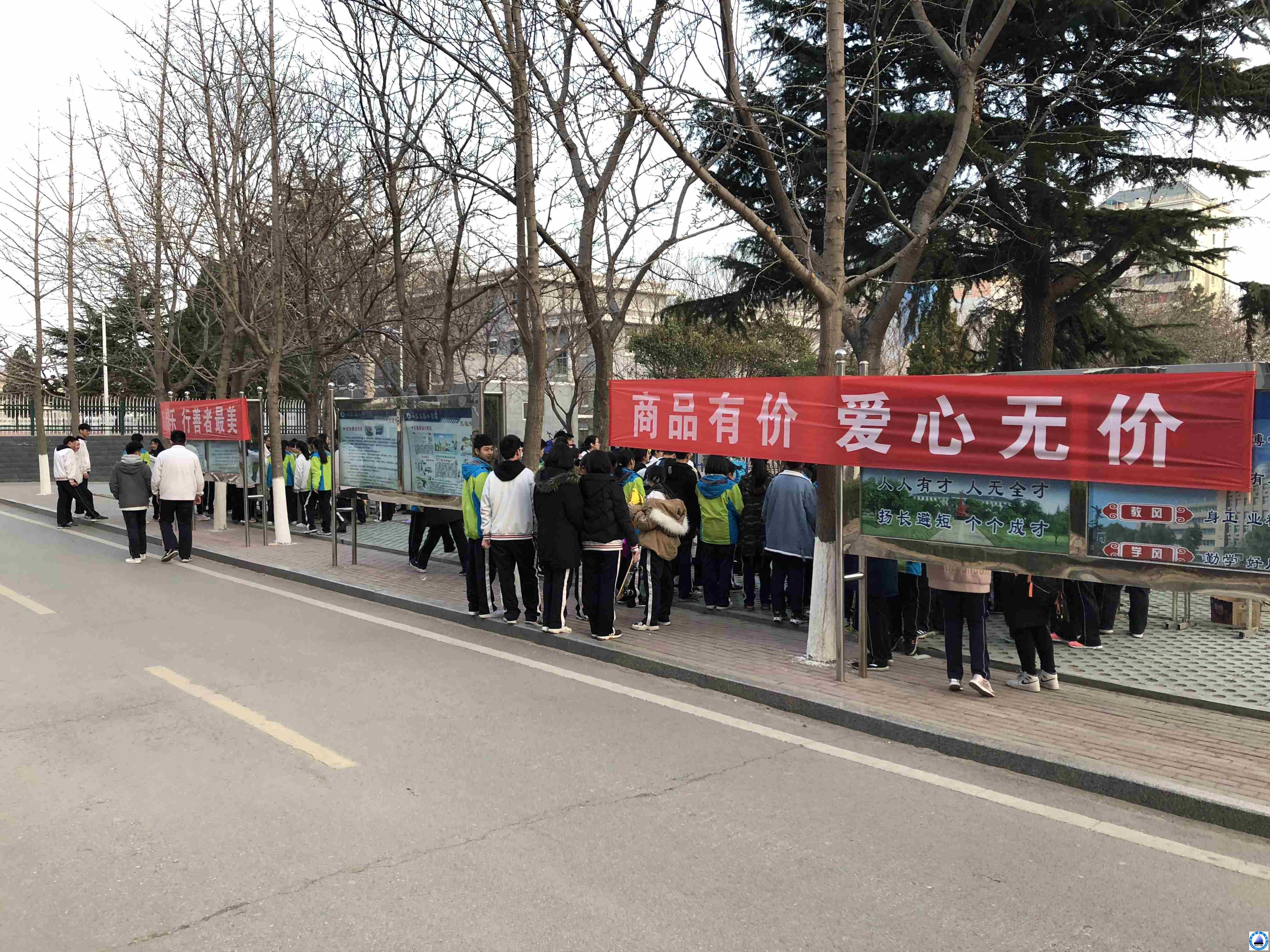 为大力弘扬“奉献、友爱、互助、进步”的志愿精神,服务社会,奉献他人,提升自我。高二年级团支部,认真筹划,带领各班团支书做了大量筹备工作,制作海报、场地规划、统计义卖品等。每个班级各自为战,敢拼帮超,把书桌变成“专柜”。“专柜”上摆满了各种捐赠物,有参考书、杂志、小说、玩偶玩具、台灯、绿植……义卖同学奋力吆喝,热情推销。小花园内人头攒动、爱心泛滥!