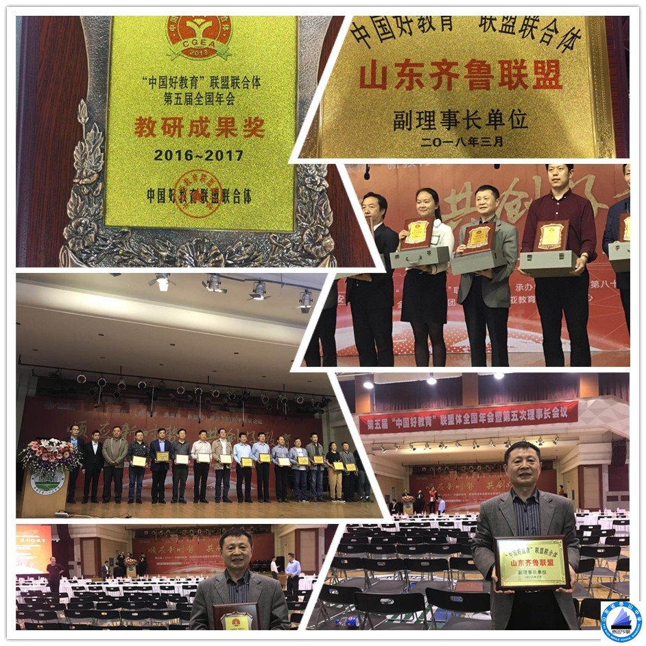 泰山中学荣获“中国好教育”联盟联合体全国教研成果奖,成为山东省唯一获此殊荣的高中学校,荣誉是对我校坚持实施“诱思八环活力课堂”教学改革的褒奖,还因为2017年高考成绩优异,我校确定为“山东齐鲁联盟”副理事长单位。