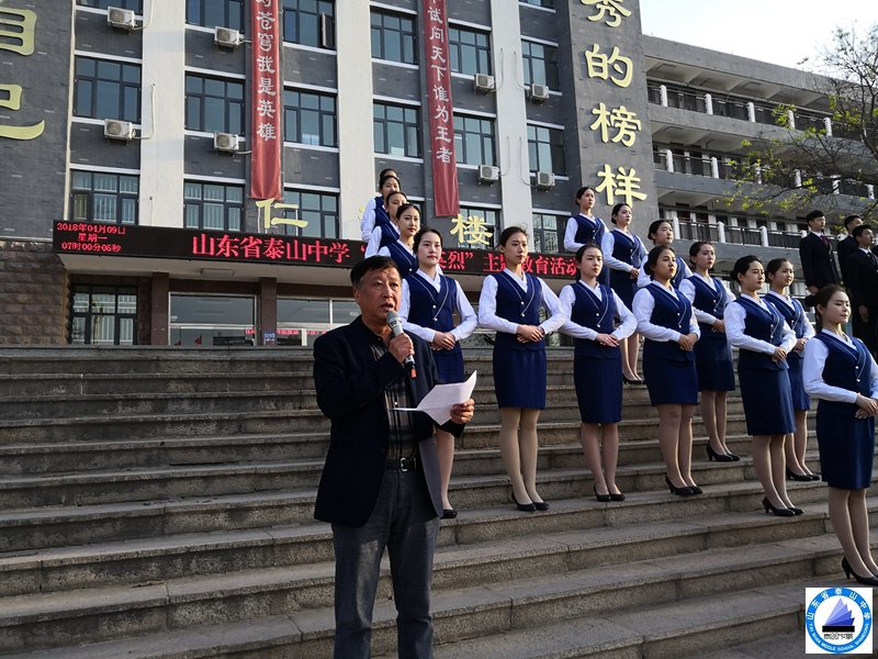 山东省泰山中学升国旗仪式(2018年4月9日)——清明祭英烈主题教育活动