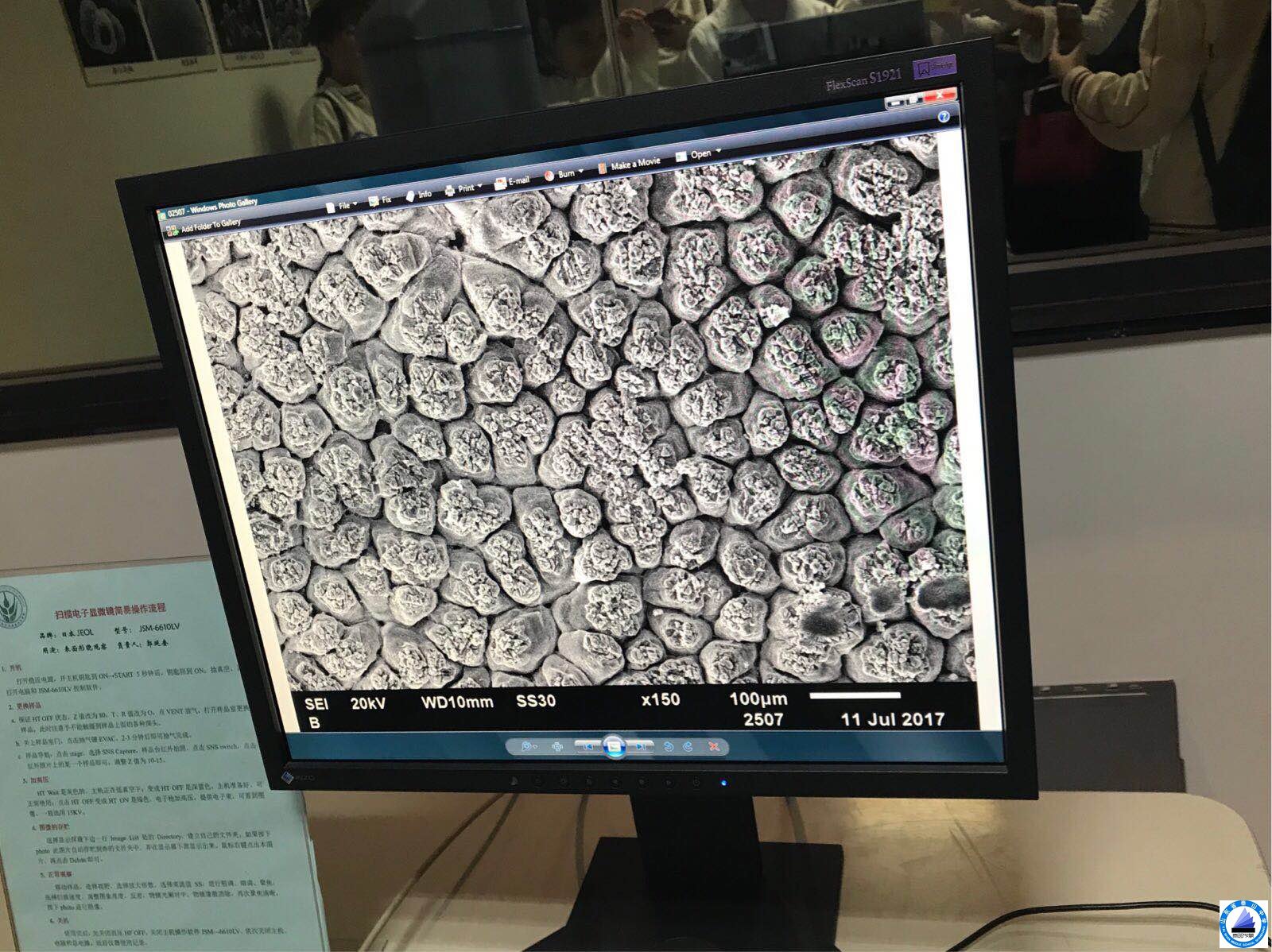 在作物生物学国家重点实验室中,同学们表现的异常兴奋,大家被那些高大上的实验仪器所折服,在科研人员的耐心讲解下,大家在透视电子显微镜下,看到了各种发着绿色、红色荧光的"有趣"结构,在扫描电子显微镜下,大家看到了放大到微米级别的鸡蛋的蛋壳表面等结构,每一项无不冲击着学生的眼球。在志愿者的帮助下,同学们还亲自动手使用了移液枪。通过亲身的实验操作和直观的视觉体验,同学们深切的认识到精密仪器在科研工作中起着极其重要的作用,并感受到国家重点实验室严谨专业的科研氛围。