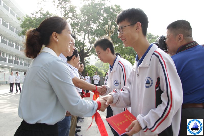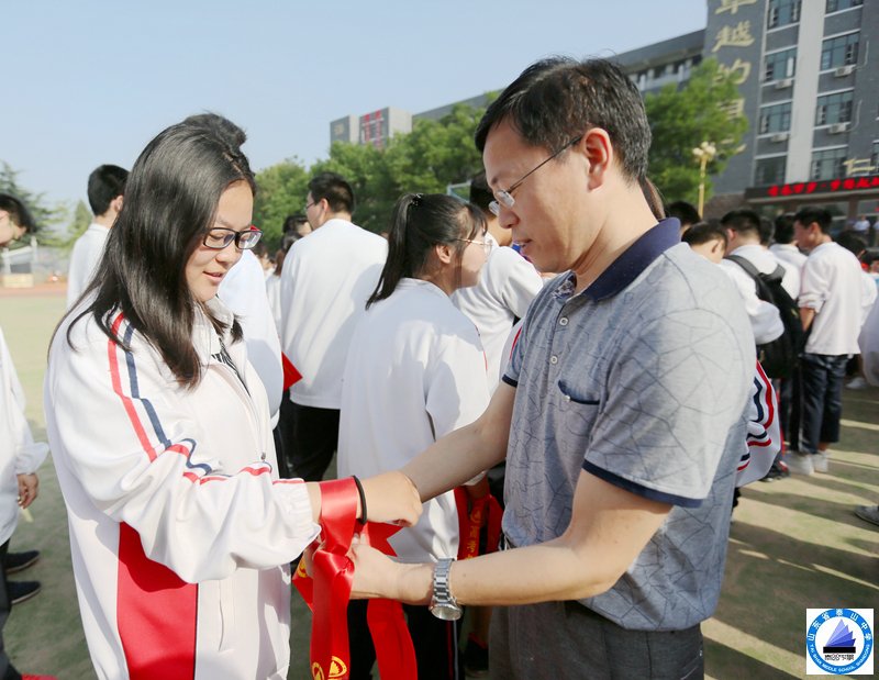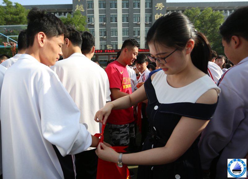 高三全体教师为即将奔赴高考战场同学们系上了代表着祝福、吉祥的红丝带,为他们顺利出征,保驾护航!