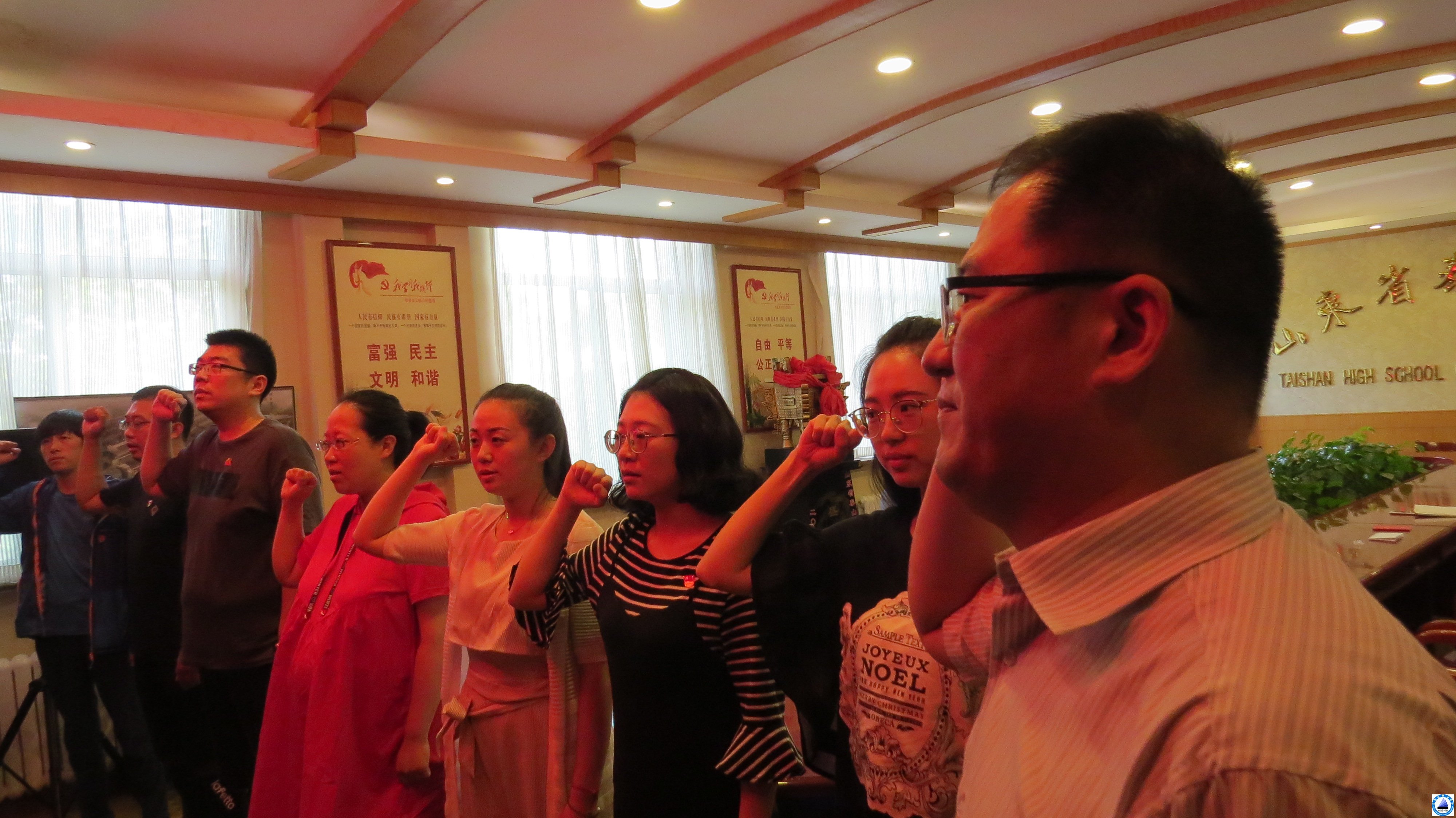 按照党员发展工作要求,5月31日下午,泰山中学在小学部二楼会议室举行新党员入党宣誓仪式。学校党委副书记席忠祥、办公室主任王庆峰、办公室副主任李长合、老党员代表张辉以及7名新党员参加此次活动。活动由李长合主持。