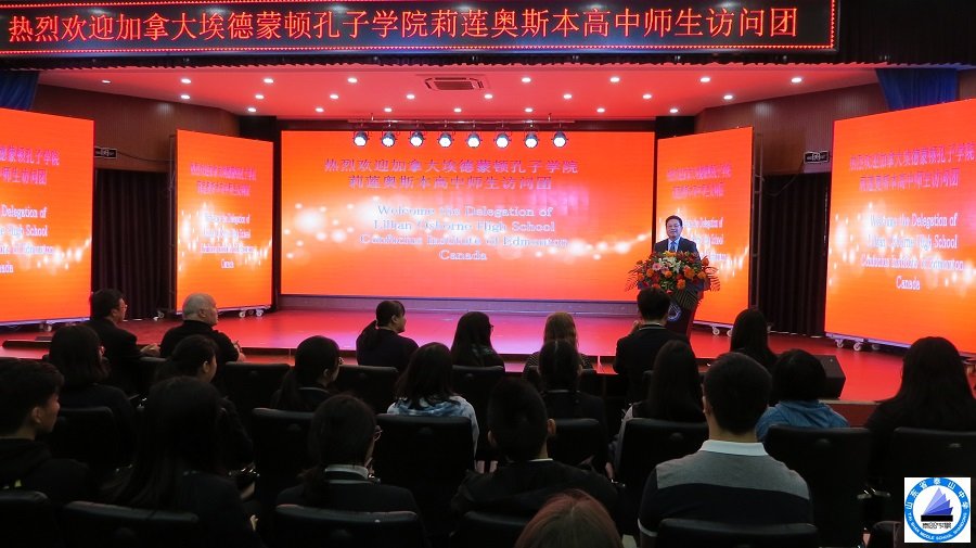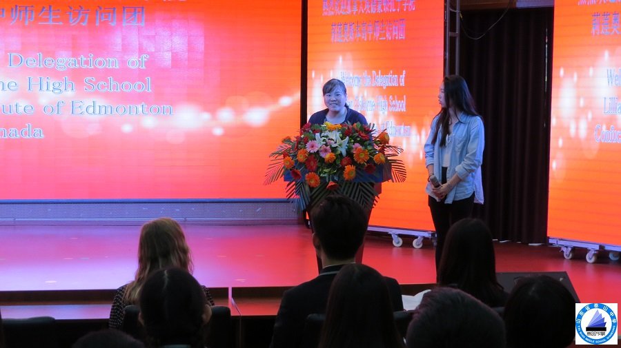 参观结束后,我校在西院报告厅举行了欢迎仪式。宋校长首先对访问团的到来表示热烈欢迎,然后从学校规模、国际交流等方面简要介绍了我校的基本情况,并重点介绍了我校开设中加班的特色教学情况。指出我校高度重视国际交流与合作工作,与国外多所高中建立了多种形式的良好合作关系,希望通过访问团的访问,进一步推动两校之间的学术和文化交流。加拿大莉莲奥斯本高中Wendy女士对我校的热情接待表示感谢,对来到办学历史悠久的山东省泰山中学访问表示荣幸。他们十分希望与我校进一步开展英语及汉语特色教学工作,并促进双方在人才培养以及文化交流等方面的深层次合作。