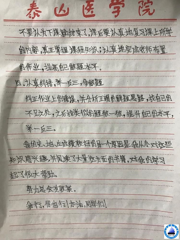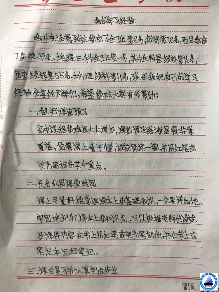 李逸翔同学的弱项是英语和语文。由于平时上课困难,平时基本需要自学,父母没有请任何老师给他补课,也只是帮助他查查作业。在入学后的第一次月考,就给老师同学一个大大的惊喜:班级第3名,级部第73名。他给大家写了一份学习经验,用自己的实际行动,感染和激励着每一位同学。