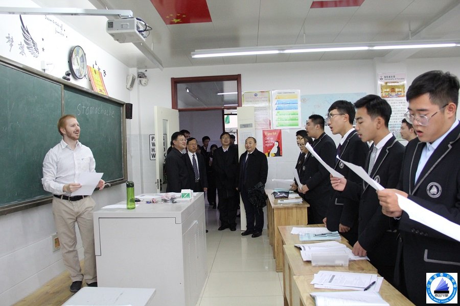 省市领导首先实地考察了我校的校园环境,在参观的过程中了解了我校的办学规模、师资配置、学生层次等各方面的情况。省市领导依次参观了高中部、小学部和中加班。在中加班进行参观时,中加班学生们用优美的英文歌曲《country road takes me home》对来访的领导们表示热烈的欢迎。随后,白厅长一行还走进中加班的教室进行参观交流,并查看了中加班学生使用的全英文教材。