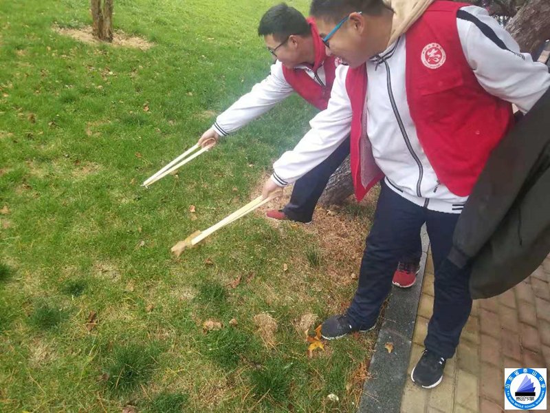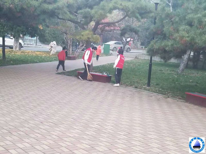 下午一点半,我们穿上了属于我们的红色“战甲”拿着卫生工具,浩浩荡荡来到了学校的西苑,第一天大家都兴致勃勃,不惧寒冷,认真打扫每一片有树叶的地方,就这样从西苑的东边一直扫到西边,好像想要在每一片打扫过的地方都留下我们劳动过的痕迹,证明我们的劳动成果。