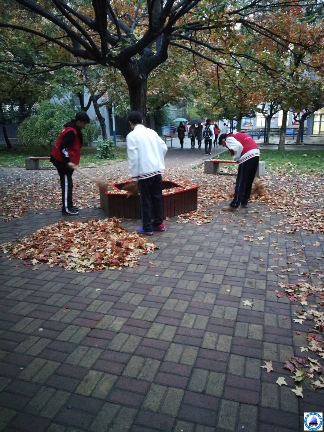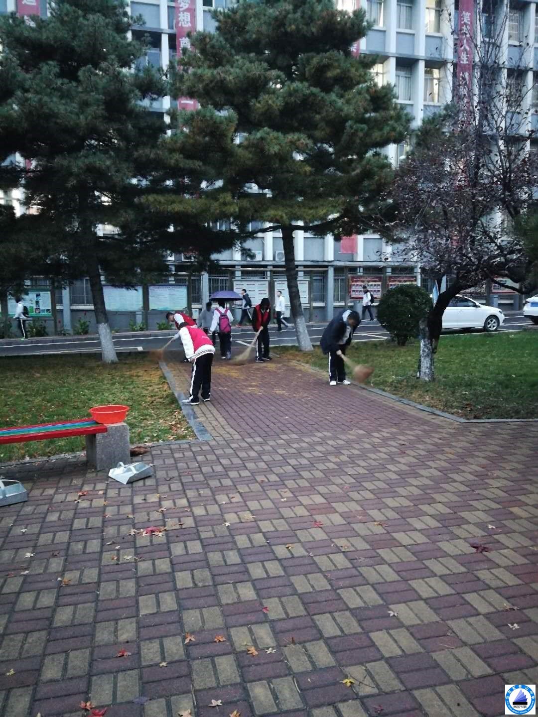 虽然天气渐凉,落叶较多,但没有打消同学们的热情,每天都能提早进班。中途遭逢下雨,同学们毫不退缩,克服重重困难,将吃苦耐劳的精神贯彻到底。通过这次志愿者服务,加强了班级的团结合作能力,也使同学们体会到了环卫工人的不易。合影中,同学们的脸上绽放着充实的笑容。冬天的寒风冰冷刺骨,同学们的心却炽热澎湃!