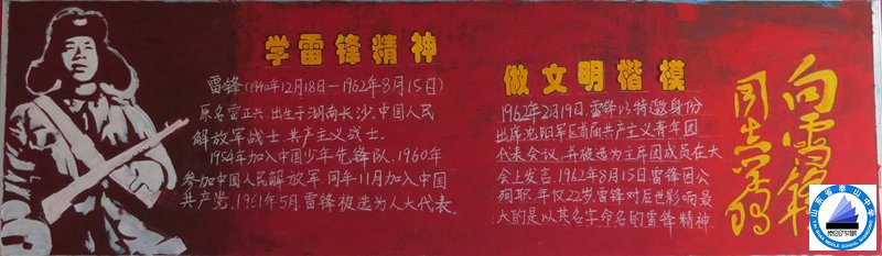 三是开展“学雷锋精神,做文明楷模”主题板报评比活动,各班团支部积极参与、认真设计,以丰富多彩、图文并茂的形式在黑板报上展示了雷锋精神的宣传内容。加深了同学们对雷锋同志光辉一生的认识,更加深刻地体会雷锋精神,从而更好的向雷锋同志学习,在日常生活中发扬雷锋精神,有力的推动了学校学雷锋活动的深入开展。