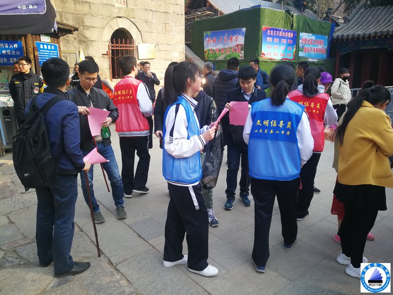 阳春三月,春意盎然,泰山红门迎来了许多踏青的游客。为了践行志愿服务精神,促进文明旅游,优化旅游环境,3月10日,泰山中学2018级4班、15班志愿服务队在班主任老师的带领下来到红门景区开展文明旅游志愿服务活动。