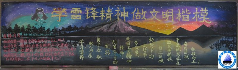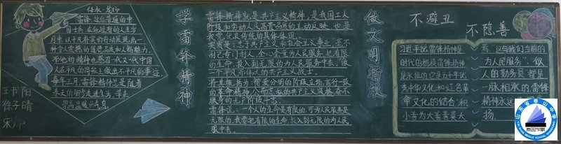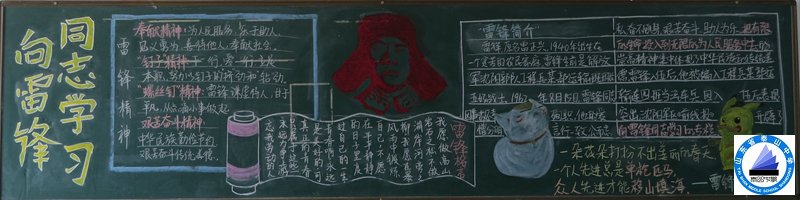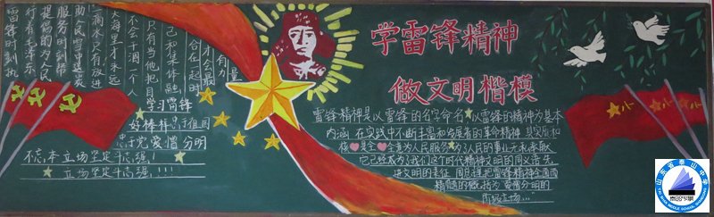 各班组成板报编写组,紧紧围绕“学习雷锋精神,做文明楷模”的板报主题,认真收集资料,从选稿、选版,到绘图、抄写,师生精心策划、密切协作,利用课余时间编排了一幅幅内容丰富、图文并茂的黑板报。