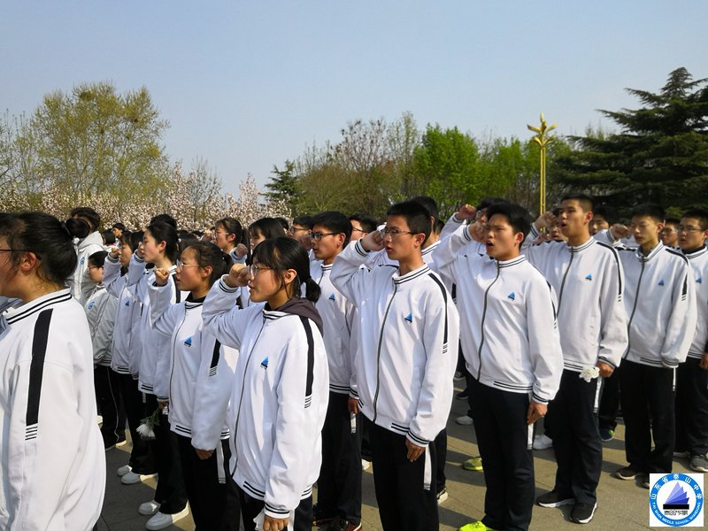 全体新团员在团旗前集体宣誓,立志一名合格的共青团员;团委书记陈海燕在讲话中,要求每一名共青团员时刻铭记自己肩负历史的责任和使命,牢记烈士的遗愿,砥砺前行,执着追求,将个人的理想信念与伟大复兴的中国梦相结合,放飞青春梦想,书写人生华章。在瞻仰烈士墓,参观烈士陵园时,学生对先烈的事迹表示由衷的钦佩和赞叹,整个祭扫活动庄严肃穆,文明有序。