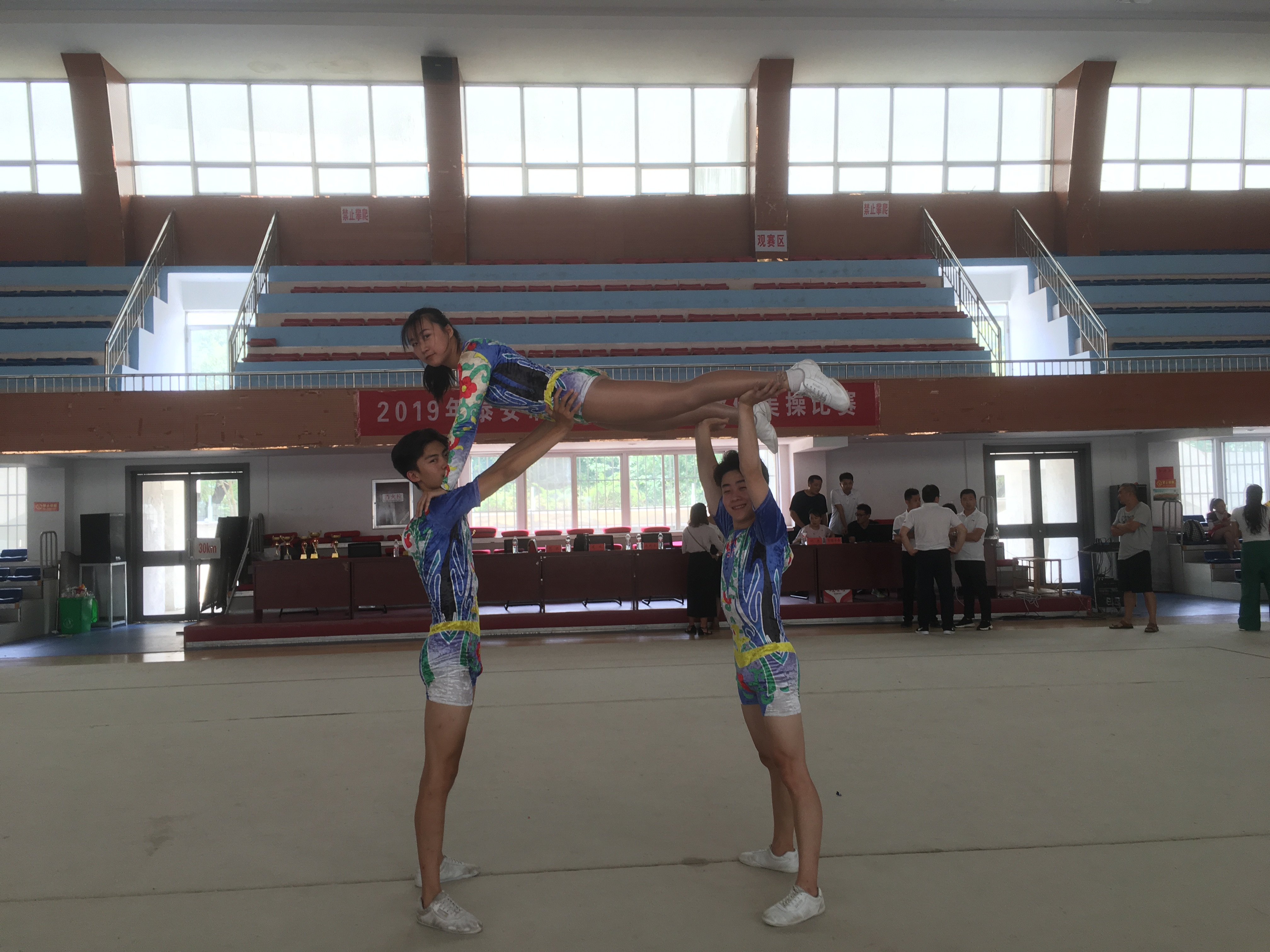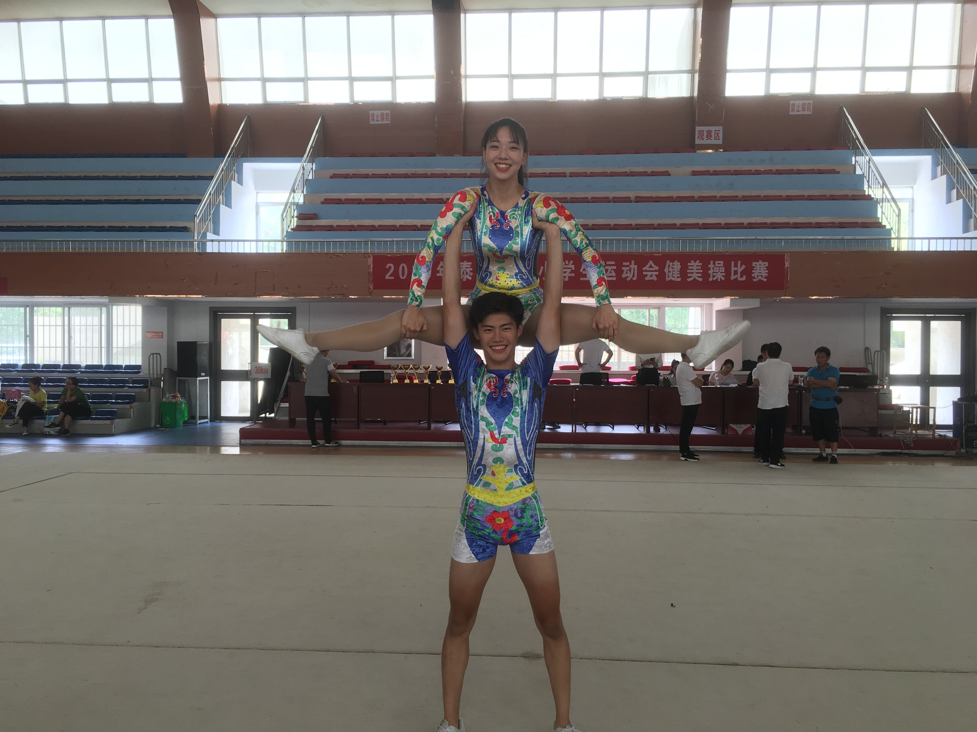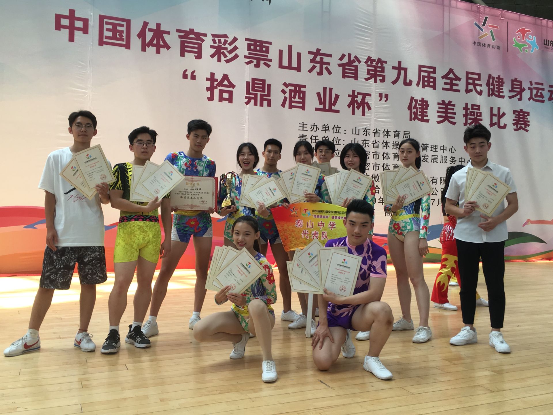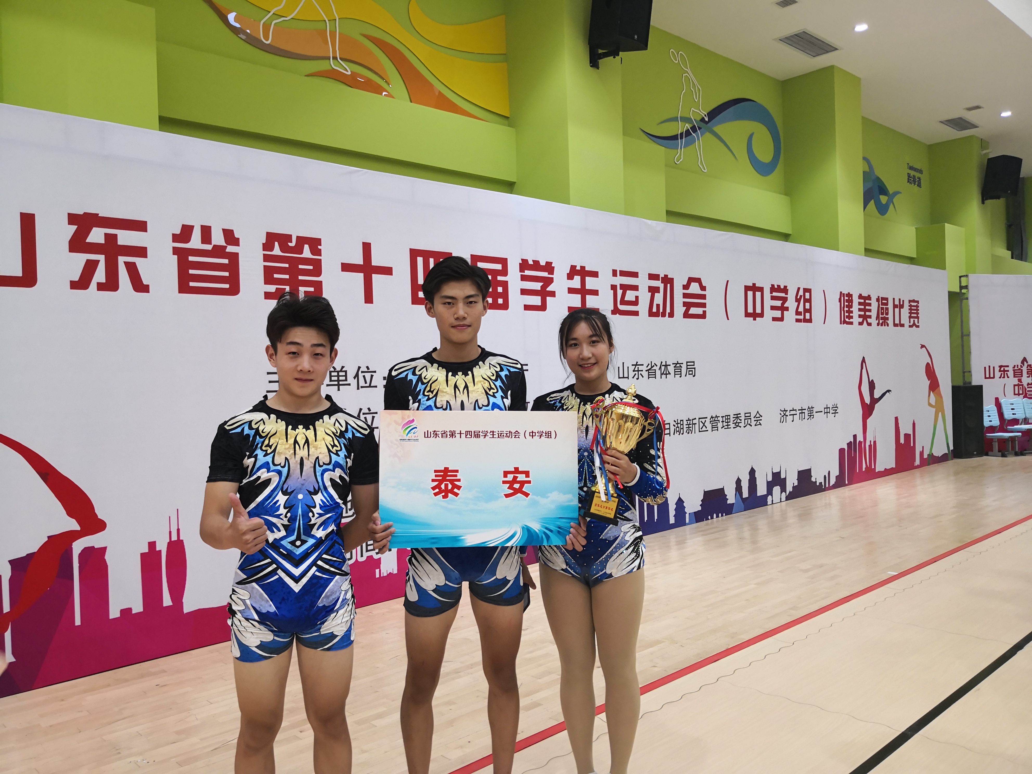 由市教育局牵头组队参加的山东省第十四届中学生运动会健美操比赛于8月16号-20号在济宁一中举行。本届比赛我市总共派出8人参赛,我校有3名队员通过选拔参赛。最终刘佳艺获女子单人操第五名,张信智、杨志明获男子五人操第四名,集体获团体赛第四名,团体总分第四名,优秀教练员奖。另外2017级杨晓宇,赵一两位同学参加2019年全国健美操锦标赛,获混双第十名,五人操第十名的好成绩,同时获国家健美操一级运动员等级称号,取得2020年大学录取保送资格。