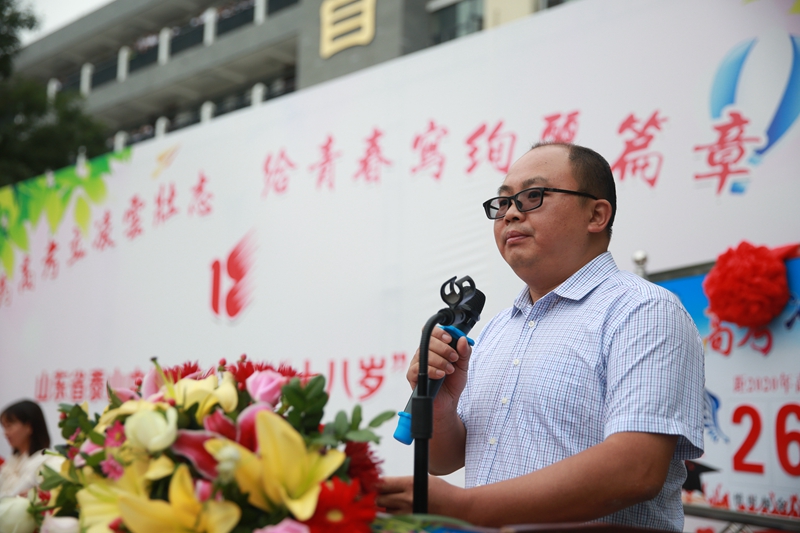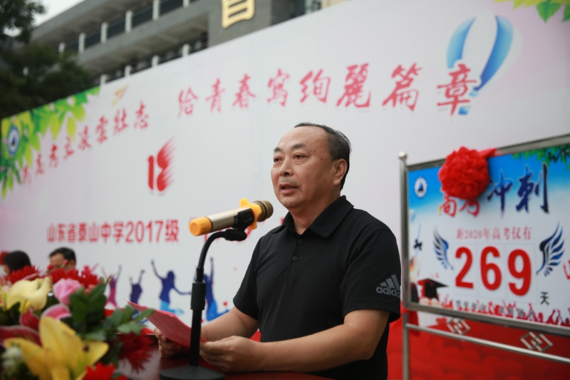 泰山中学校长周军在致辞中指出,十八岁,是从稚嫩走向成熟的里程碑,是成人的标志。同学们要勇敢地承担起成年人的责任与使命。要眼里有光,敢立“鸿鹄”之志;要心中有国,养正“责任”之德;要拼搏有为,勤练“奋进”之功。新时代是追梦的时代,更是奋进的时代,希望同学们不断砥砺前行,学会做人,学会做事,学会生活,学会学习,用实干拥抱伟大梦想,用奋斗书写最美华章!