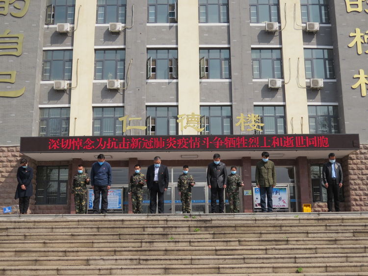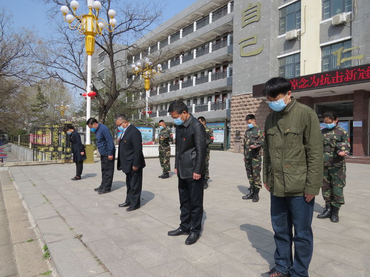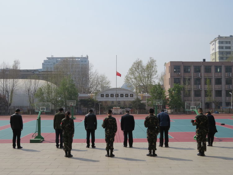 4月4日上午10时,泰山中学降半旗志哀,表达对抗击新冠肺炎疫情斗争牺牲烈士和逝世同胞的深切哀悼。国旗随着《义勇军进行曲》的节奏升至顶端,国歌结束后又缓缓降下,降至距离旗杆顶端1/3的位置。泰山中学党委书记刘勇、副校长党委成员宋玉成、校长助理张连刚及全体在校值班人员参加了悼念活动。待警报响起,大家在学校操场上面向国旗庄严肃立,默哀三分钟。