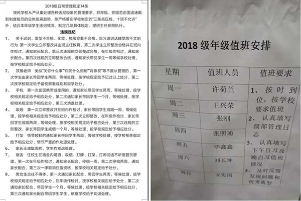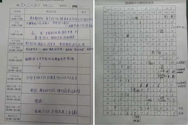 培训后的学生会成员在老师的带领下进行检查,主要针对各班的室内外卫生、自习课纪律、楼道或厕所有无吸烟等情况进行巡查。周日晚自习第一节定期召开全体学生会成员会议,总结上周情况,布置下周工作重点。