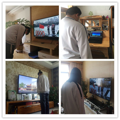 全校师生在家跟随中央电视台直播举行哀悼仪式,面向国旗向英雄默哀,用最庄严的方式表达对生命的敬重。