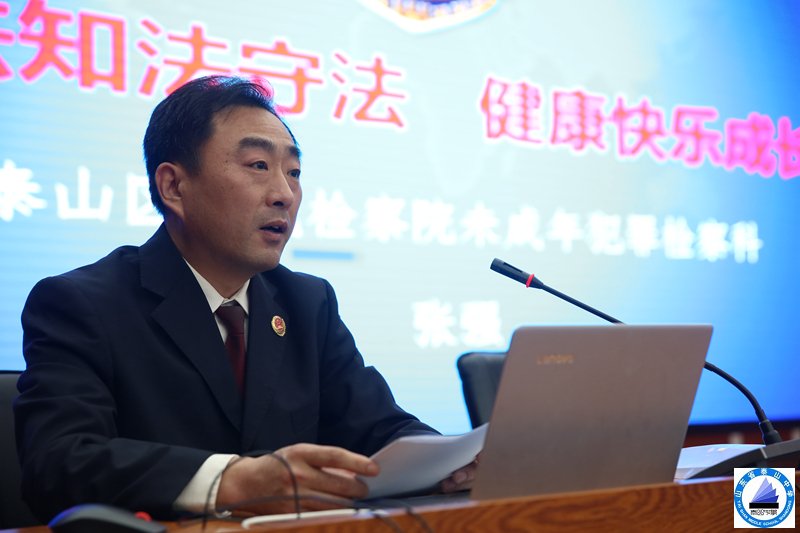 活动中,泰山中学学工处主任、团委书记陈海燕为法治教育辅导员颁发了聘书,泰山区人民检察院未成年犯罪检察科科长张强同志作了题为“学法知法守法,健康快乐成长”的法治教育报告,报告结合近年来公诉过的案例,为学生们进行了深入浅出的讲解,透过这些鲜活的案例,使学生更加清晰地知晓了遵纪守法的重要性。