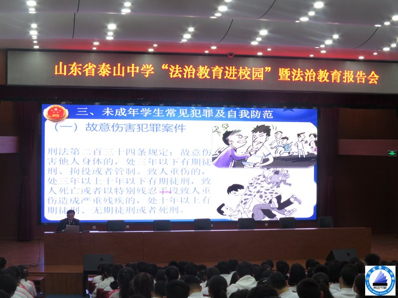 为加强法治教育,让法治教育走进校园,进一步增强学生的法治意识,接受法治教育,自觉遵纪守法,学会利用法律进行自我维护,做一个知法、用法、守法的合格中学生,4月12日,泰山中学举行了法治副校长、法治教育辅导员聘任仪式暨“法治教育进校园”报告会。