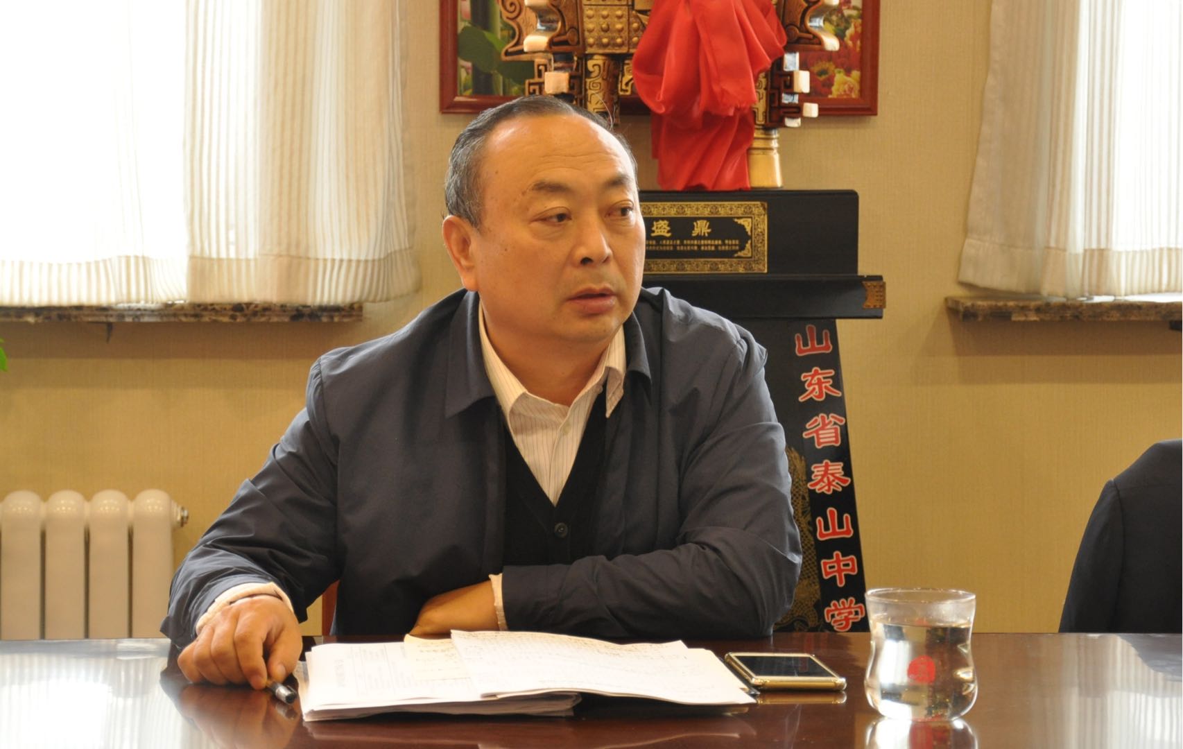 10月11日上午,山东泰山中学 “不忘初心、牢记使命”主题教育集中学习暨第二次专题研讨会在行知楼二楼会议室举行。校长周军,党委书记刘勇,党委副书记、副校长胡国保,副校长宋玉成,副校长赵永利出席会议。刘勇主持会议。