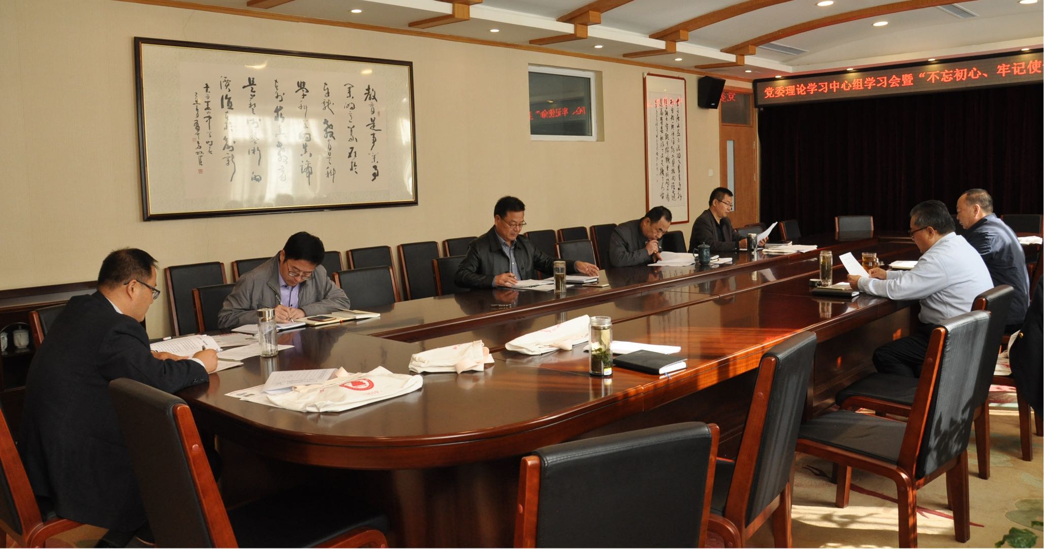 集体学习由党委副书记、副校长胡国保、副校长宋玉成、副校长赵永利领学了《习近平关于“不忘初心,牢记使命”论述选编》中的领导干部要在改进作风上发挥示范作用、领导干部要践行“三严三实、坚定不移推进全面从严治党、牢固树立“四个意识”,维护党中央权威、维护党中央权威,贯彻民主集中制、党必须勇于自我革命这六篇内容,进一步加强了大家的党性教育。