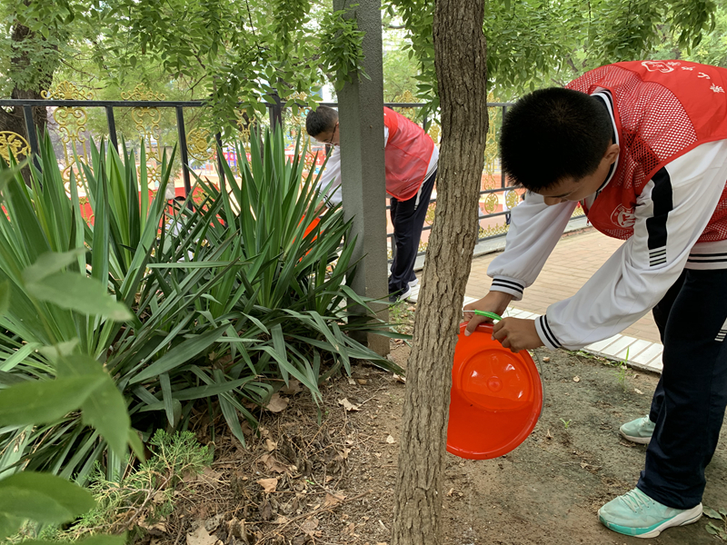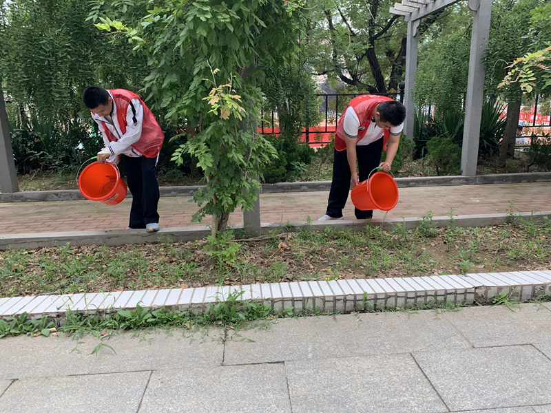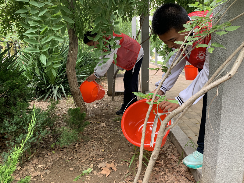 在团支书的带领下,将全班同学或分为三个小组,在本周周一、周三、周五给东院花园绿化进行浇水。两人提一桶水,尽管是女生也展现出了“女汉子”的一面,每个同学都积极参加,一片土地都不会遗漏。