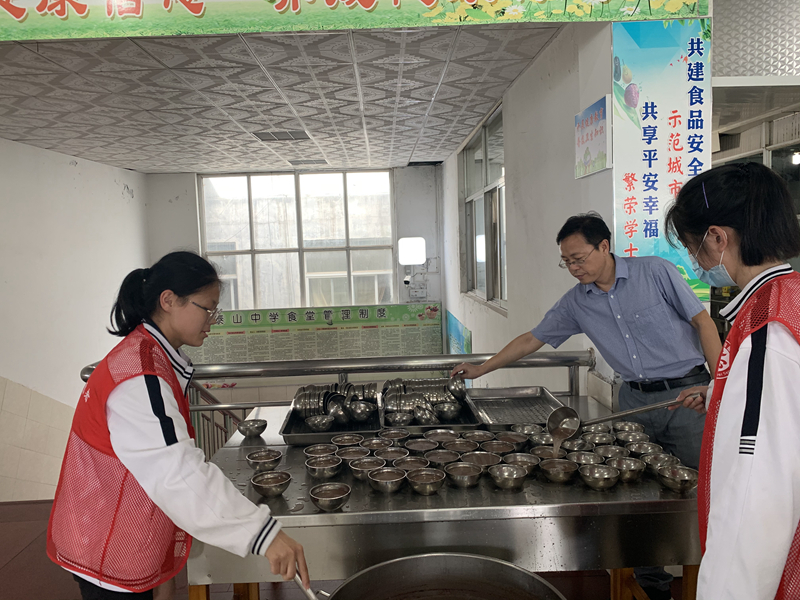 为更好的节约时间,为同学们提供便利的服务,让同学们可以喝到温度适中的粥,每天中午、下午去餐厅为同学们盛汤,排列疏通就餐队伍。每人都身穿志愿服务的红马甲不辞辛苦,利用自己吃饭时间服务同学。每个粥桶旁的红马甲成为了餐厅最美的一道风景线,同学们都纷纷侧目引来感动的目光。