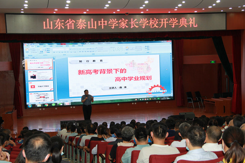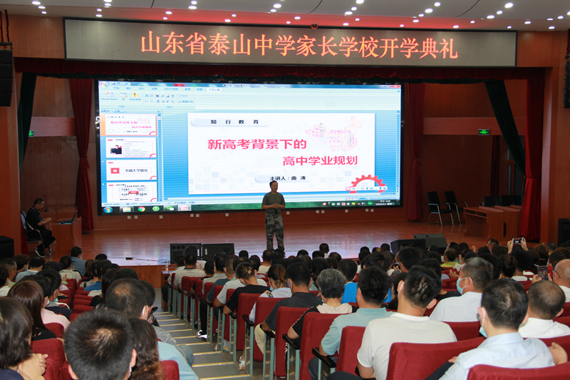 为了更好地加强家校合作和沟通,让学生拥有更加美好的未来,适应新高考背景下选科指导需要,帮助学生和家长找准自身发展方向,规划未来人生蓝图,实现高中学习突破,9月2日,泰山中学举行家长学校开学典礼,并邀请中国人生科学学会学生发展指导专业委员会理事曲涛在学术报告厅举行了“新高考背景下的高中学业规划”家庭教育讲座。