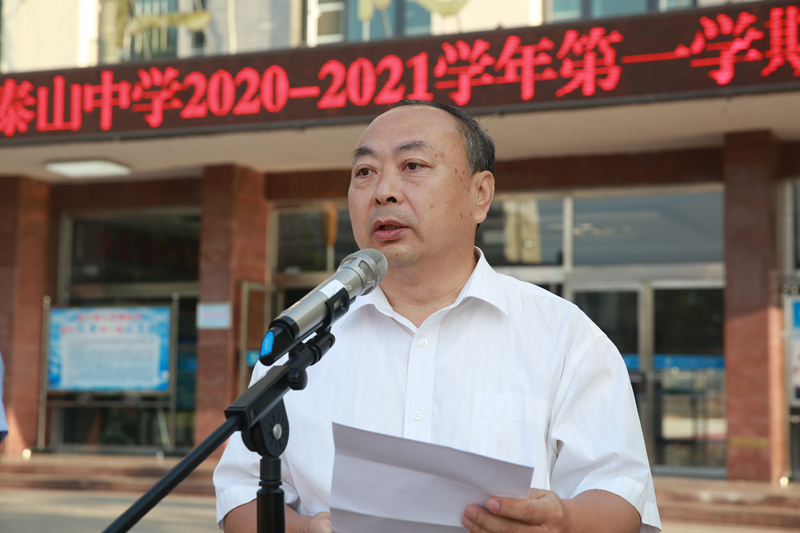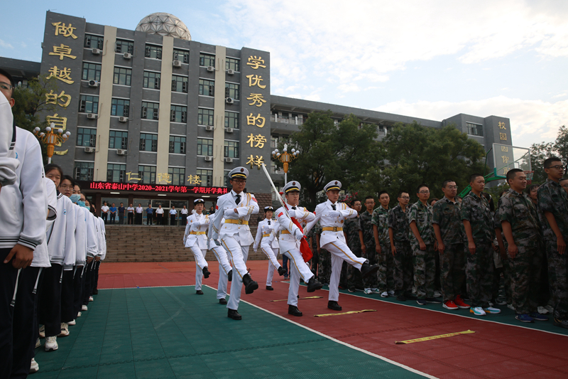 近日,泰山中学全体师生在操场隆重集会,举行2020-2021学年第一学期开学典礼暨纪念抗日战争胜利75周年升国旗仪式。