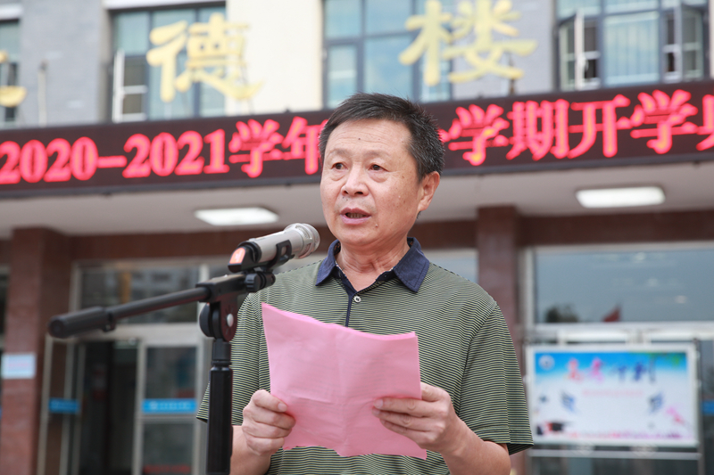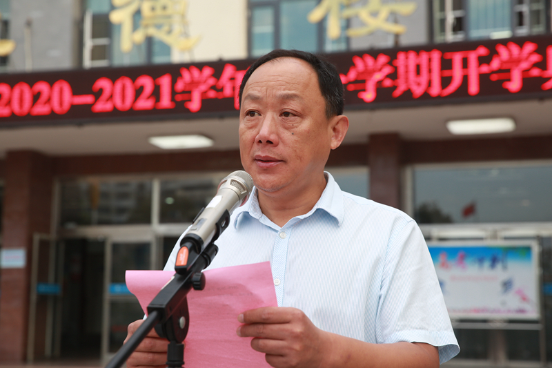 校长周军在致辞中,为师生重温了革命史,教育广大师生要立志传承革命精神,牢记历史使命,不忘初心,砥砺前行。并对上学年的教育教学情况进行了全面总结,对新学年寄予了厚望。