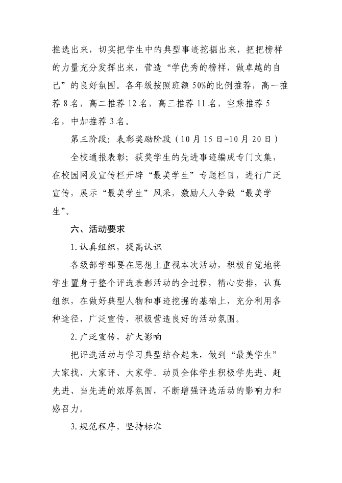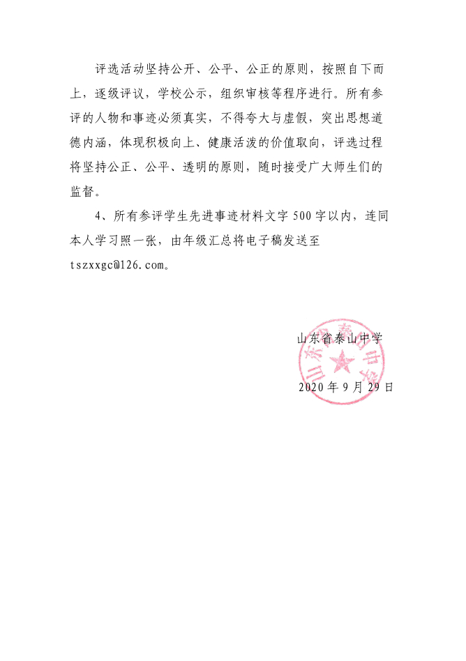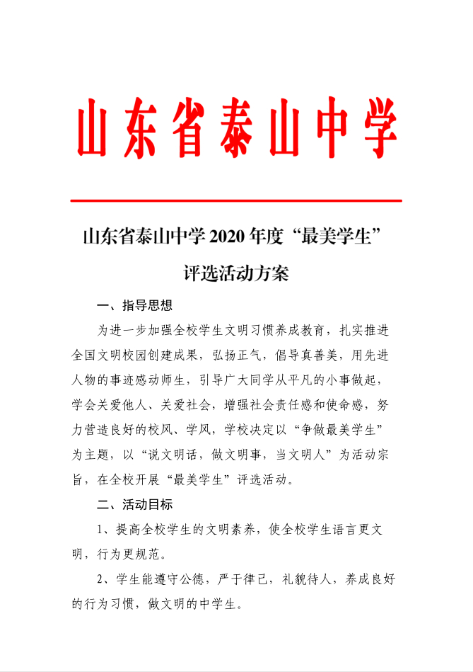 山东省泰山中学2020年度“最美学生”评选活动方案