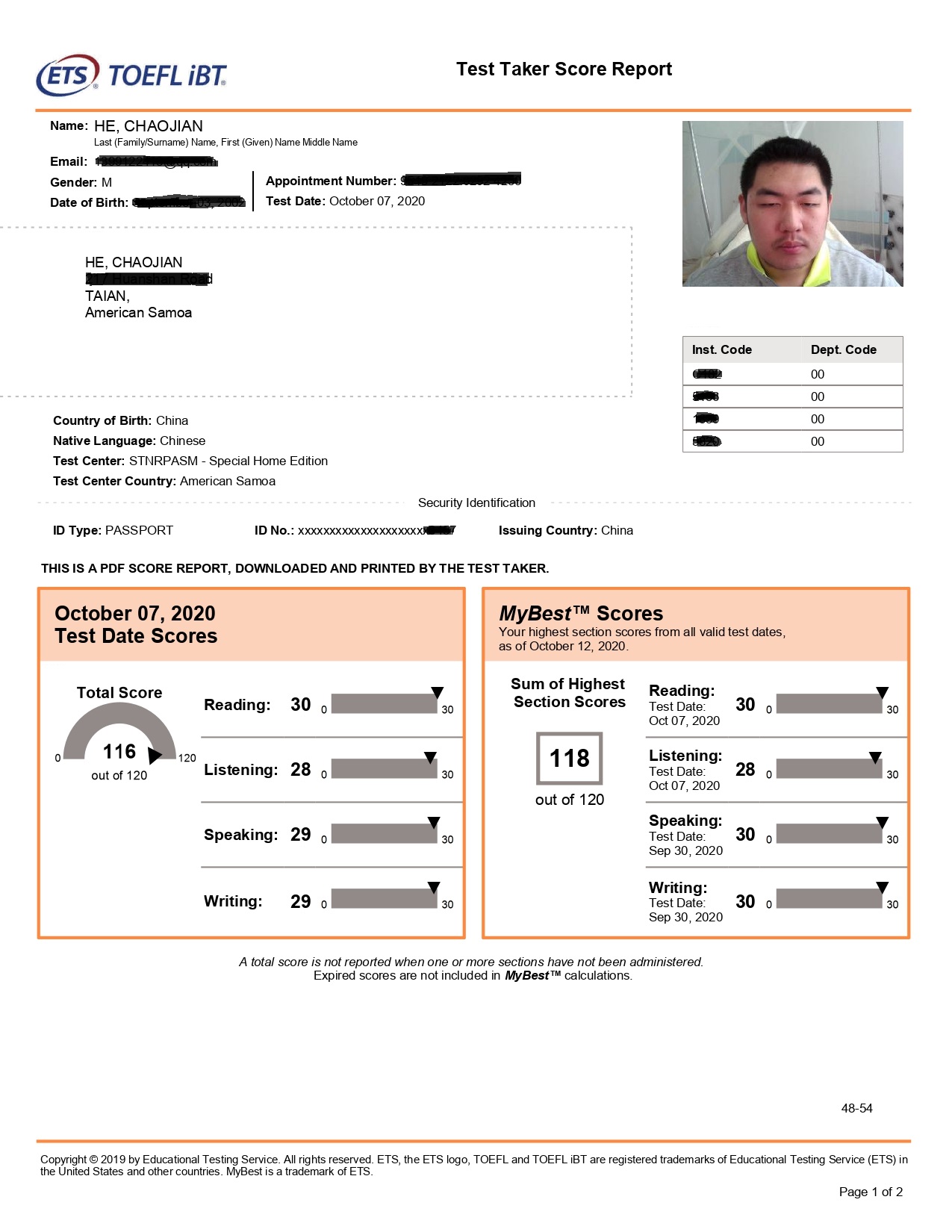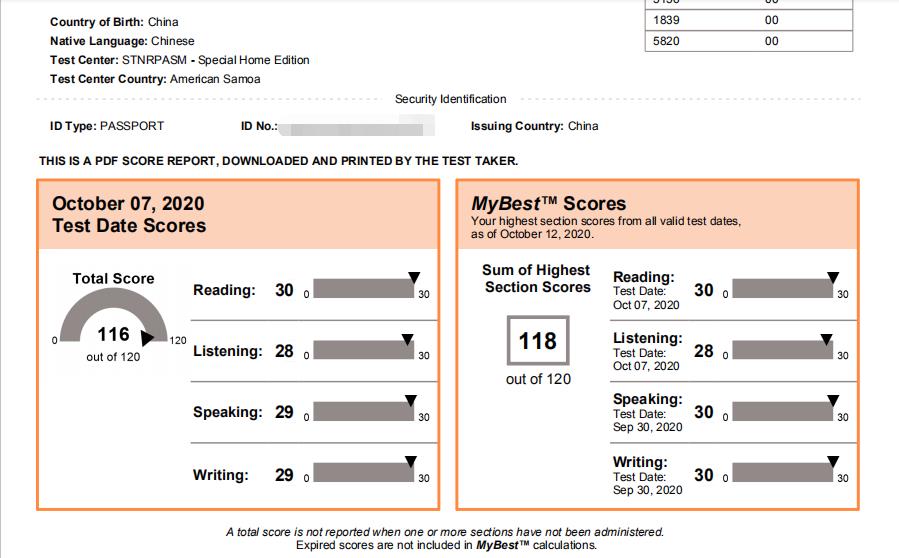 考出118分(满分120分)托福最好成绩