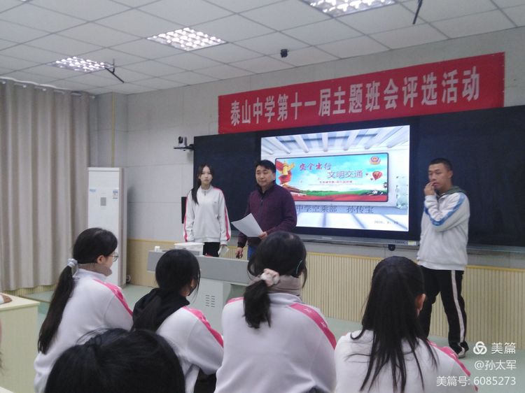 泰山中学高度重视主题班会的育人作用,始终让主题班会课成为向学生进行品德教育的有效形式和主要阵地,始终坚持把主题班会课上成既能展示班主任的综合素质,又能切实提高学生的思想道德水平,更切实有助于学生形成正确的人生观和价值观的教育形式。为此,学校教科处精心安排,各部门通力合作,精心选题,科学制定评课标准,积极引领优秀主题班会的生成。各级部认真准备,精心评比,把最优秀的班会课选送上来。高一、高二、高三、空乘部、国际部都派出优秀班主任选手参加了比赛。